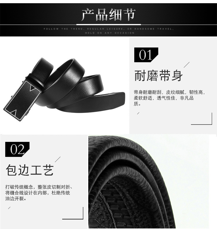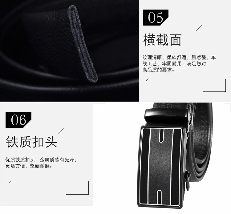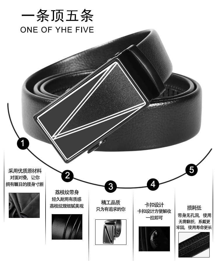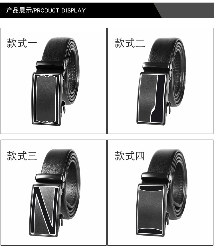 新款男士潮流荔枝纹皮带真皮自动扣皮带腰带男裤带男式商务皮带