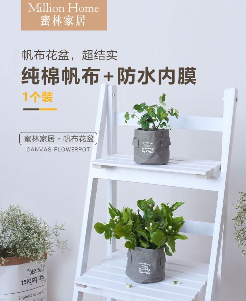 日系棉帆布防水布艺收纳袋小清新简约加厚帆布花盆袋