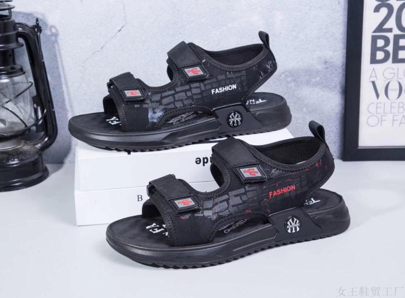 女王鞋贸工厂定制爆款网面印花透气按摩底男士户外沙滩凉鞋