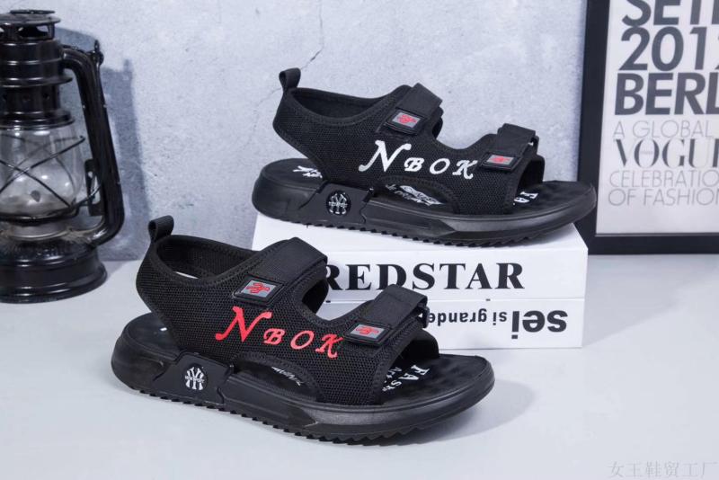 女王鞋贸工厂定制字母印花网面透气按摩底男士户外沙滩凉鞋