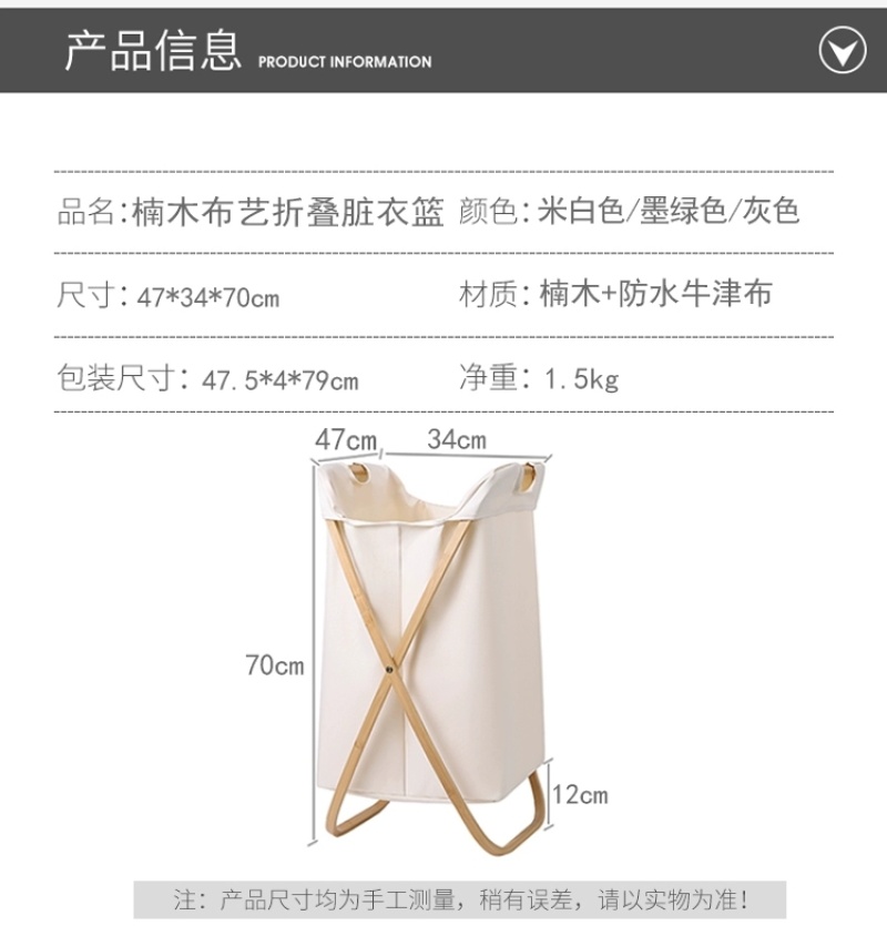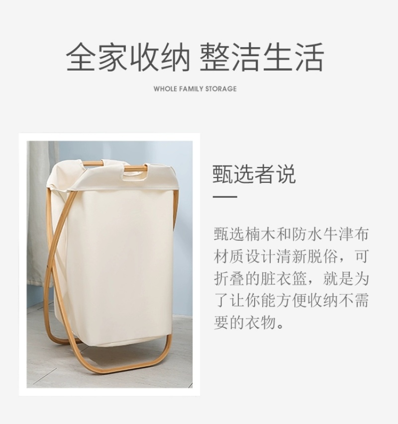 【产品名称】:收纳篓 【产品型号】:A60 【产品尺寸】:48*38*66 【产品材质】:竹子加布艺
