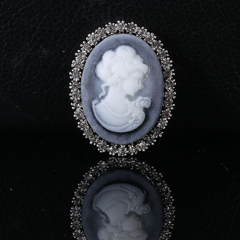 跨境欧美创意新款复古美人头胸针 合金镶钻胸花 服饰配饰别针扣