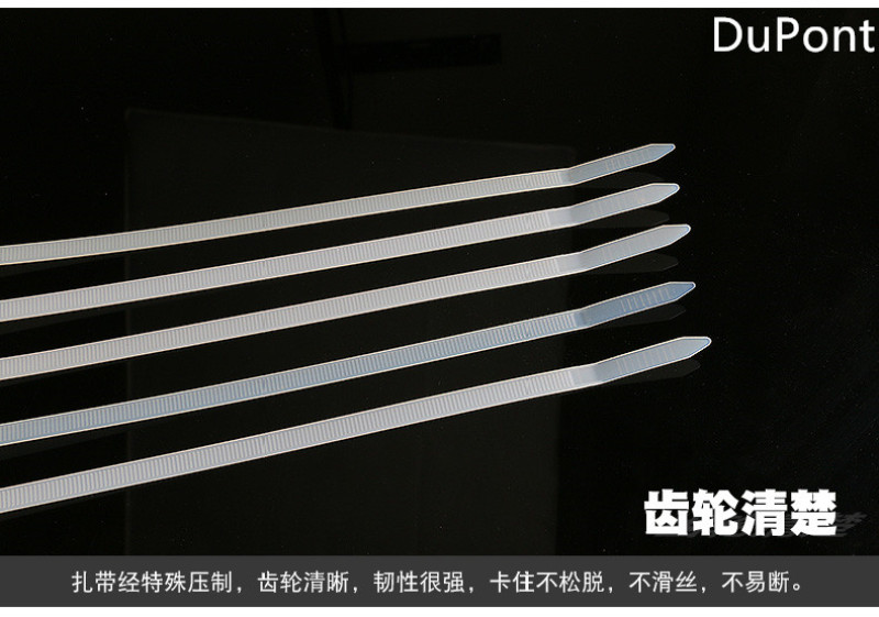 5.扎带采用UL认可之尼龙-66料制成,防火等级94V-2,耐酸、腐蚀、绝缘性良好、不易老化、重量轻、安全无毒、承受力强。操作温度为零下40到90度。综合机械性能远远优于一般工程塑料、是代替铜、不锈钢及其他有色金属的理想材料。