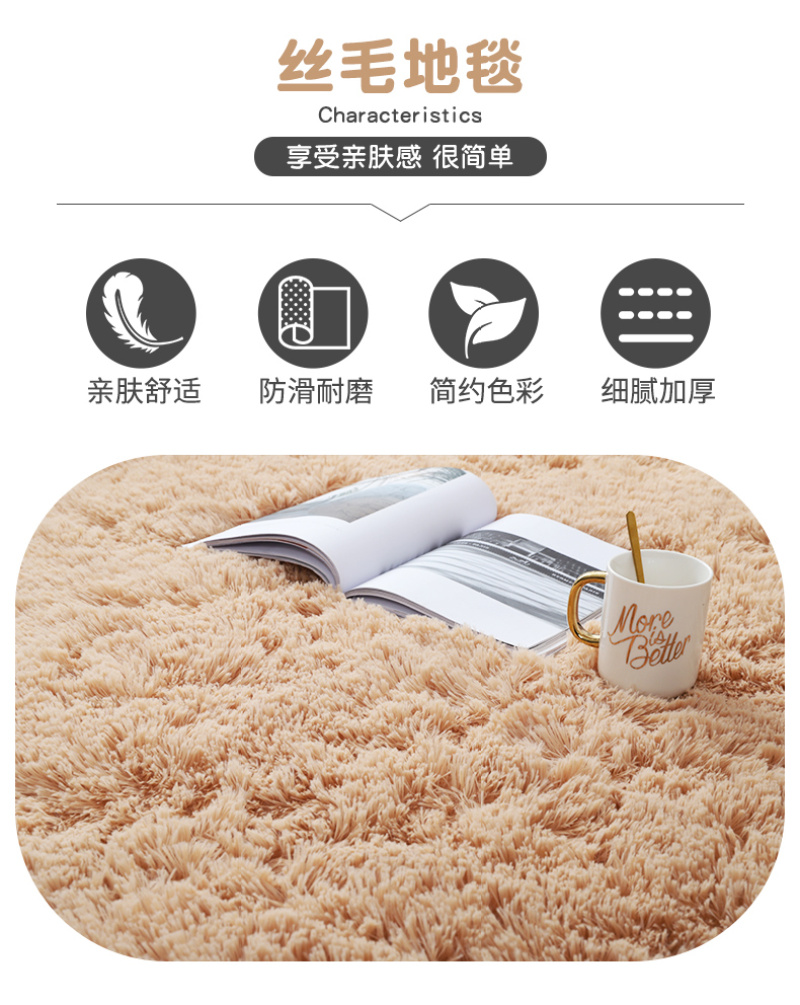 欣诚厂家直销加厚水洗丝毛防滑地毯客厅茶几卧室床边瑜伽地垫地毯