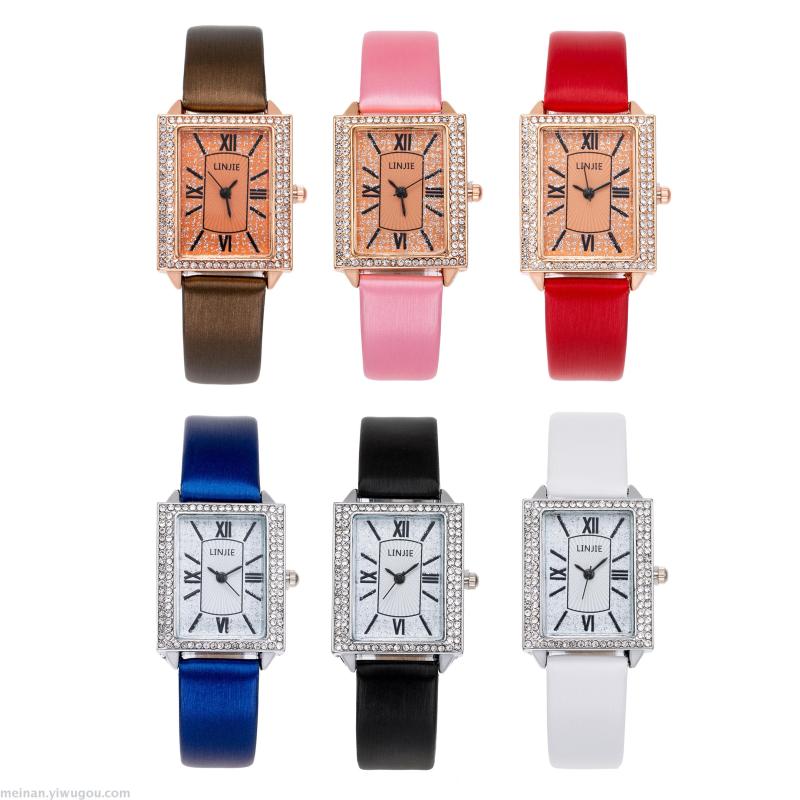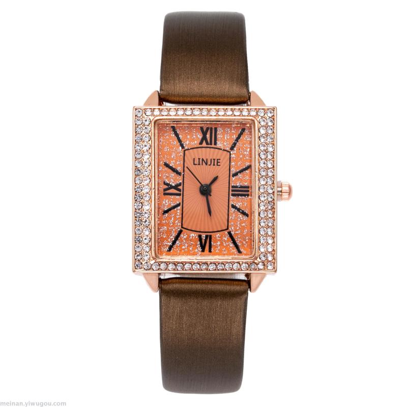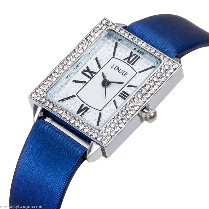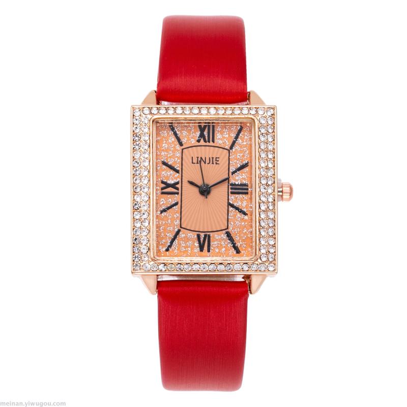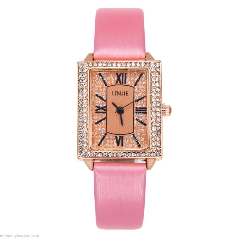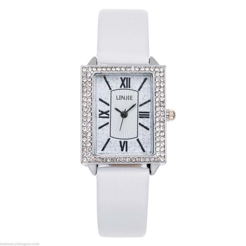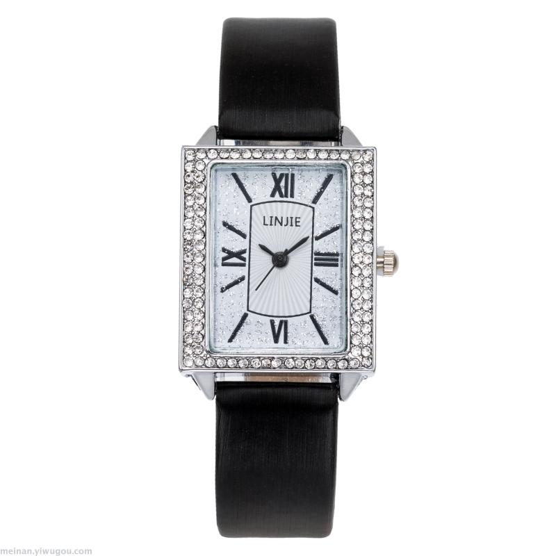 新款带钻长方形数字面清晰女士小巧细带皮表