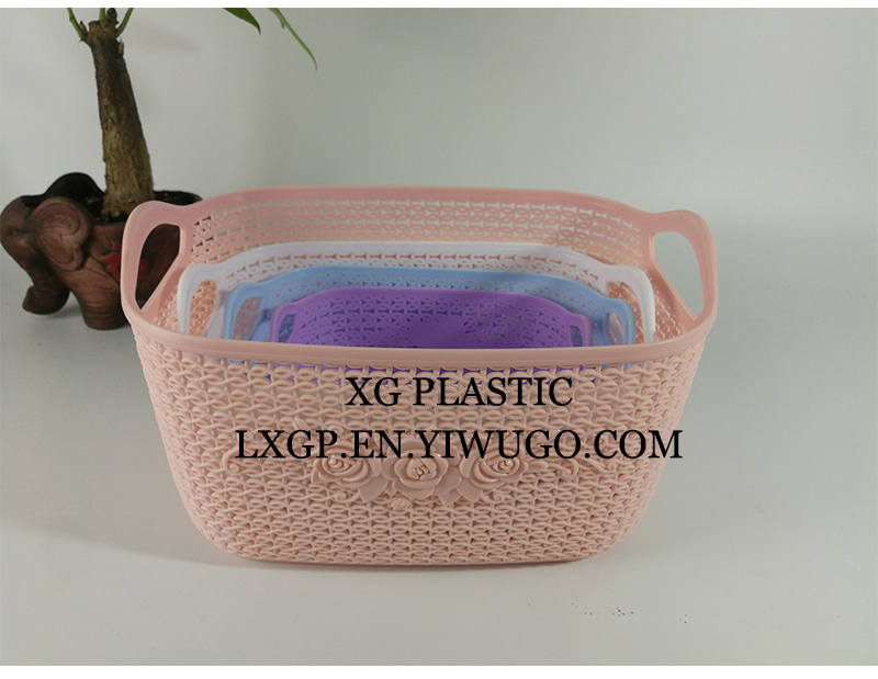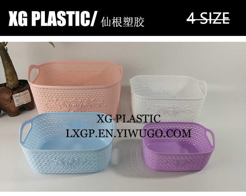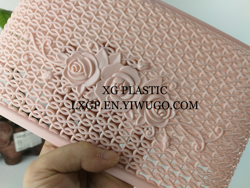 收纳篮塑料长方置物篮桌面精致玫瑰花镂空收纳篮时尚化妆品收纳篮