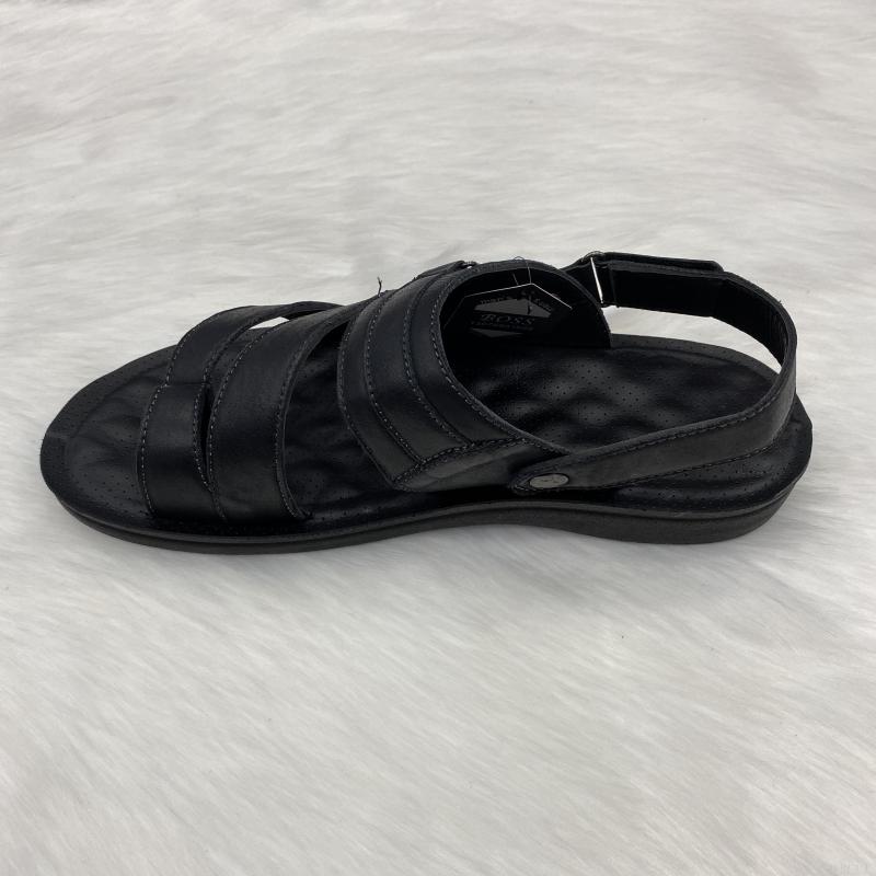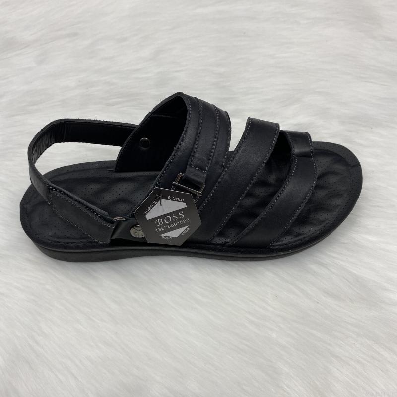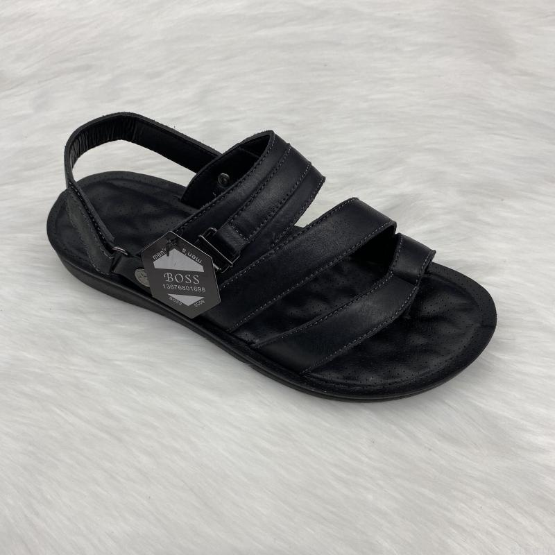 女王鞋贸时尚爆款真皮纯色金属扣装饰按摩鞋垫男士沙滩凉鞋