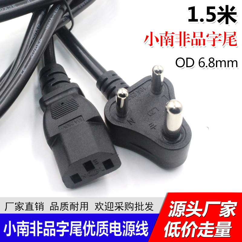小南非品字尾电源线OD6.8 印度三插头品字电脑显示屏家用电器线
