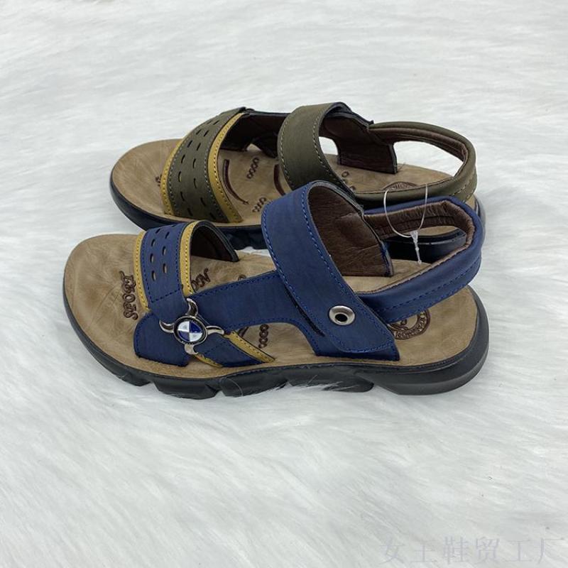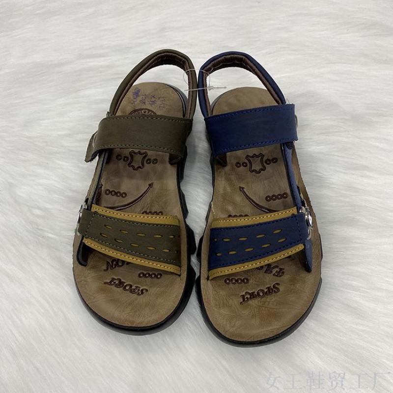 热销款PU舒适轻便魔术贴纽扣装饰户外防滑休闲男童沙滩凉鞋