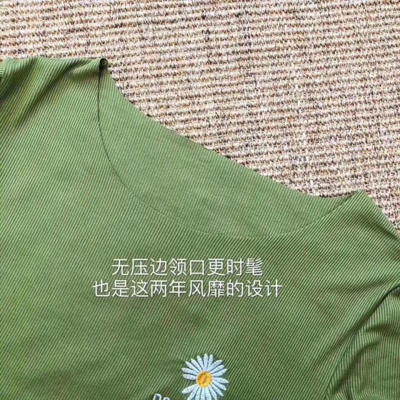 2022女短袖新款刺绣小雏菊T恤女修身显瘦减龄新款ins棉上衣潮