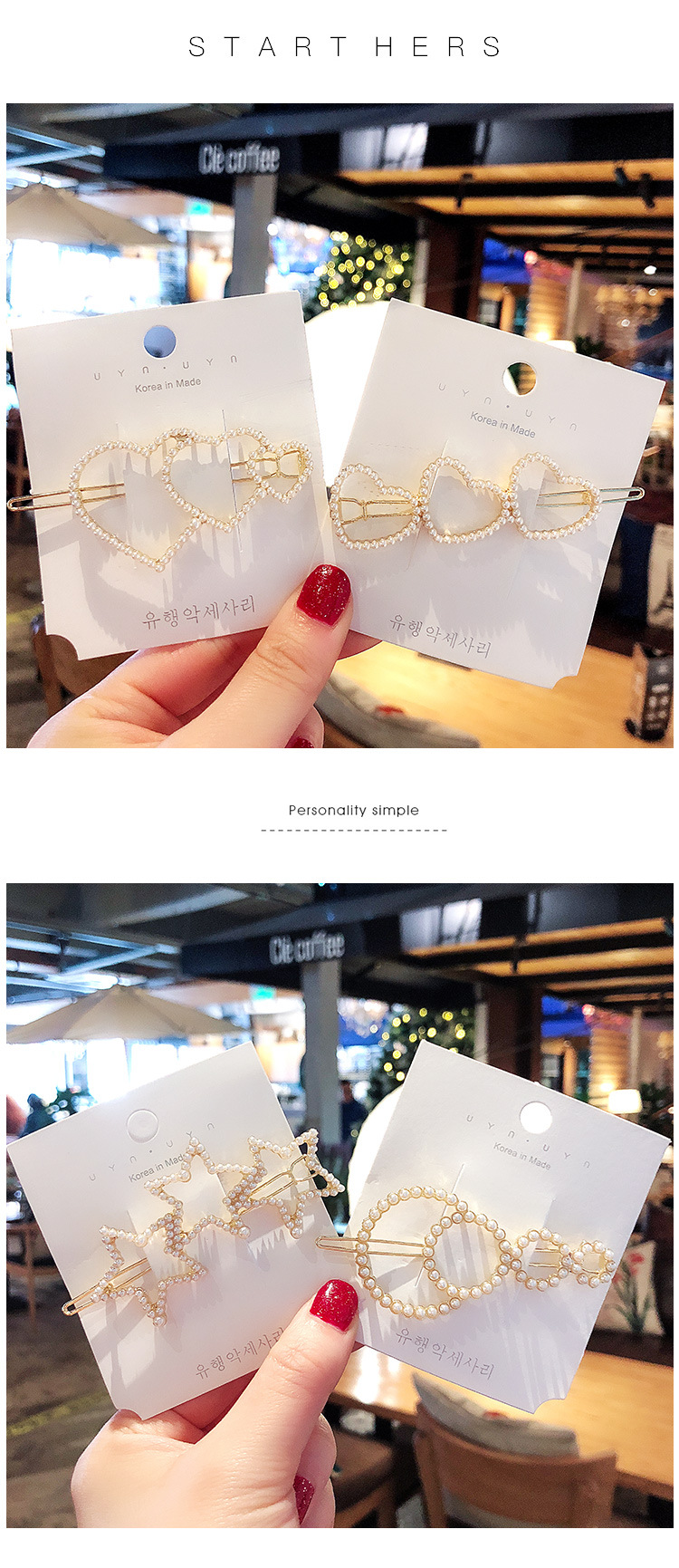 ins简约几何星星爱心珍珠发夹边夹韩国网红少女刘海一字夹发饰女