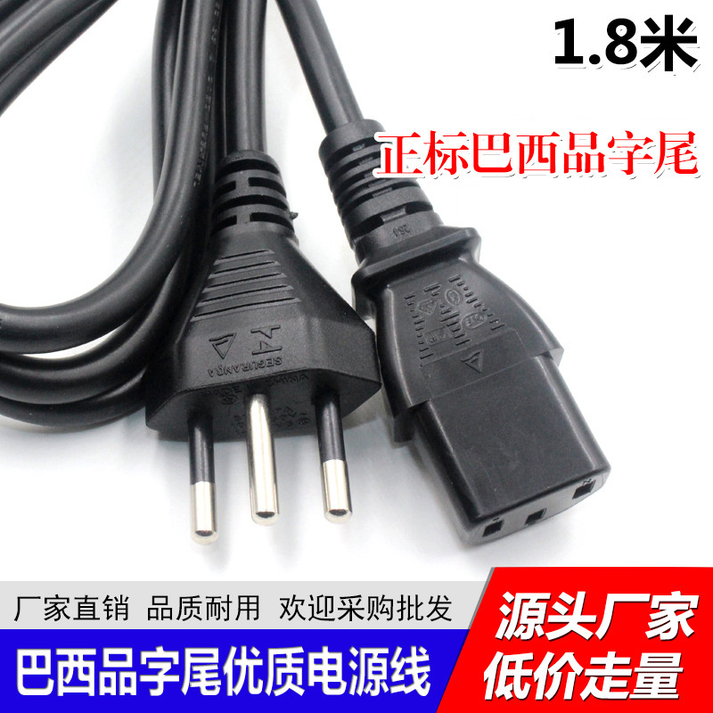 巴西品字尾电源线 巴西电源插头线 巴西电源线三插1.2米1.5米1.8