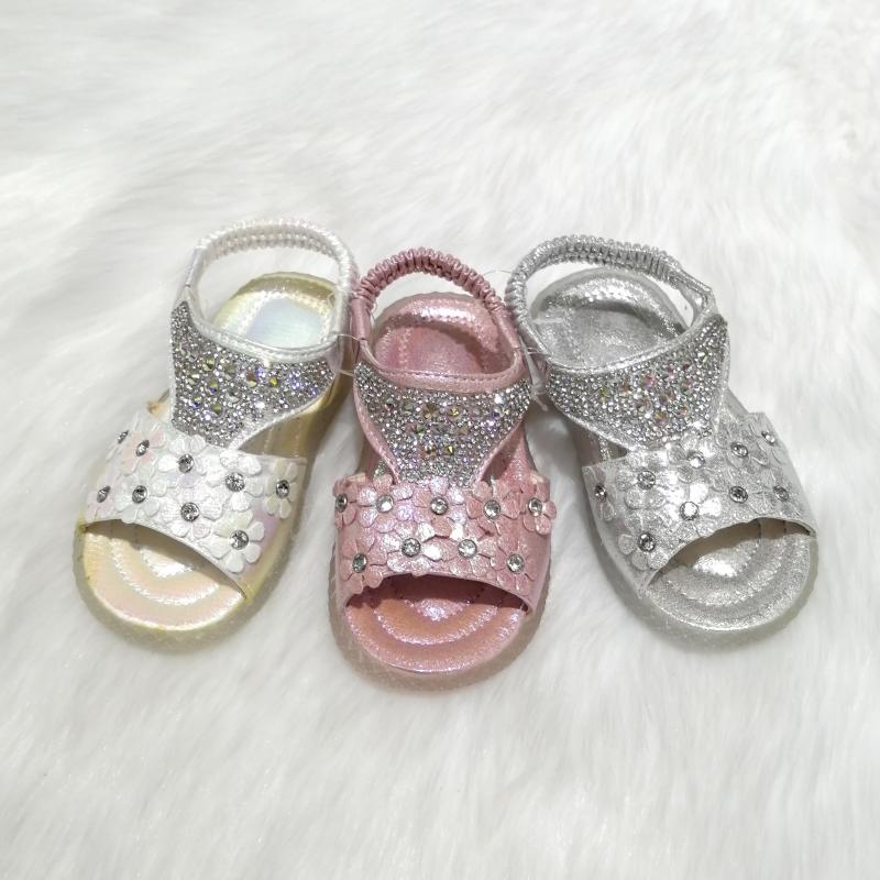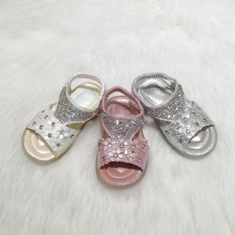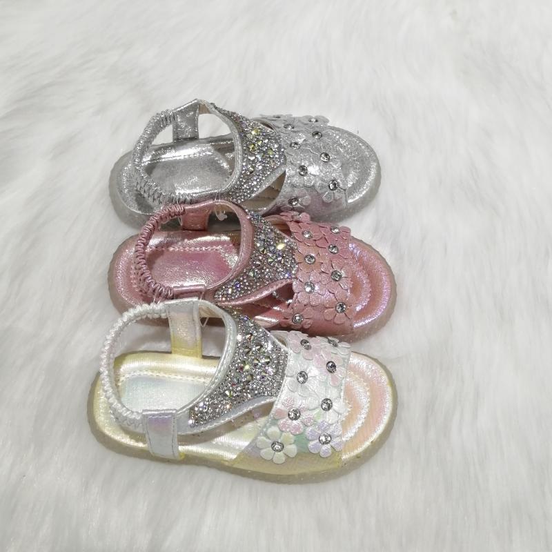 儿童女宝宝新款带灯水钻超闪软底防滑透气魔术贴凉鞋女宝宝凉鞋