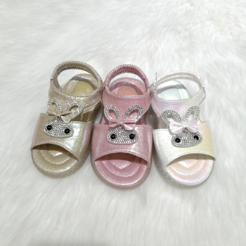 儿童女宝宝新款带灯变色兔子软底防滑透气魔术贴凉鞋女宝宝凉鞋