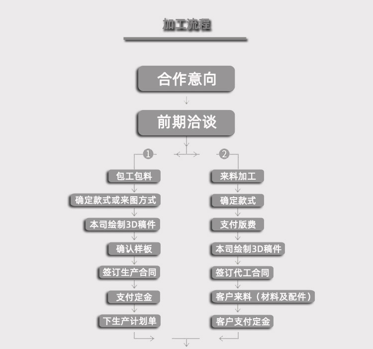 周期:单款批量生产周期15-20个工作日,新样起版开发周期20-30个工作日;