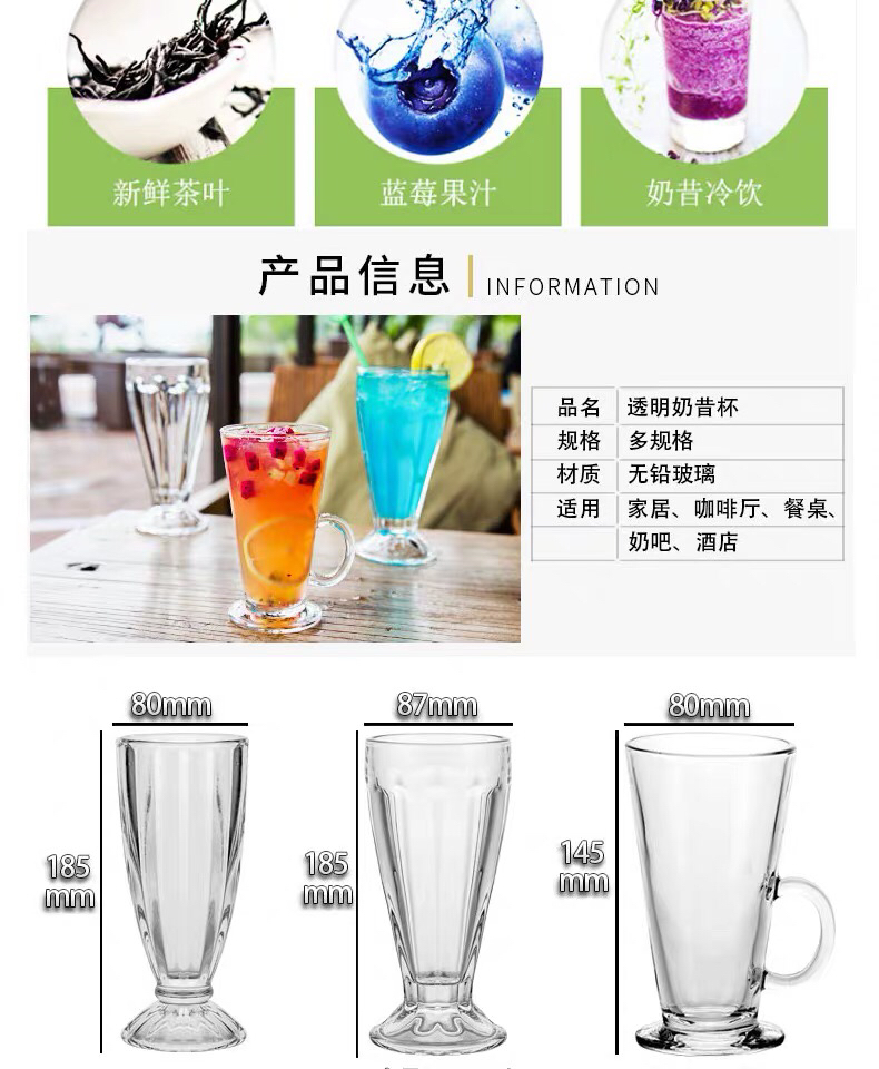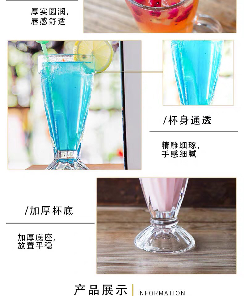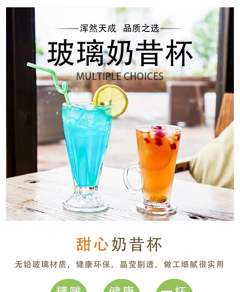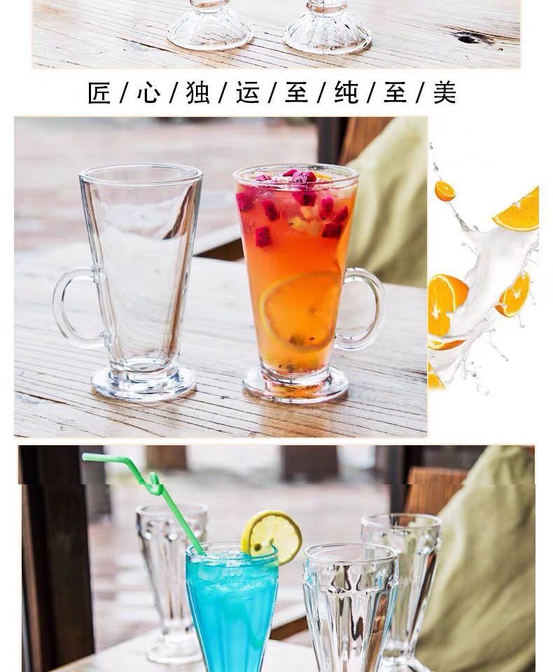 玻璃杯子家用果汁杯牛奶杯透明奶茶杯创意奶昔杯冰淇淋杯杯冷饮杯