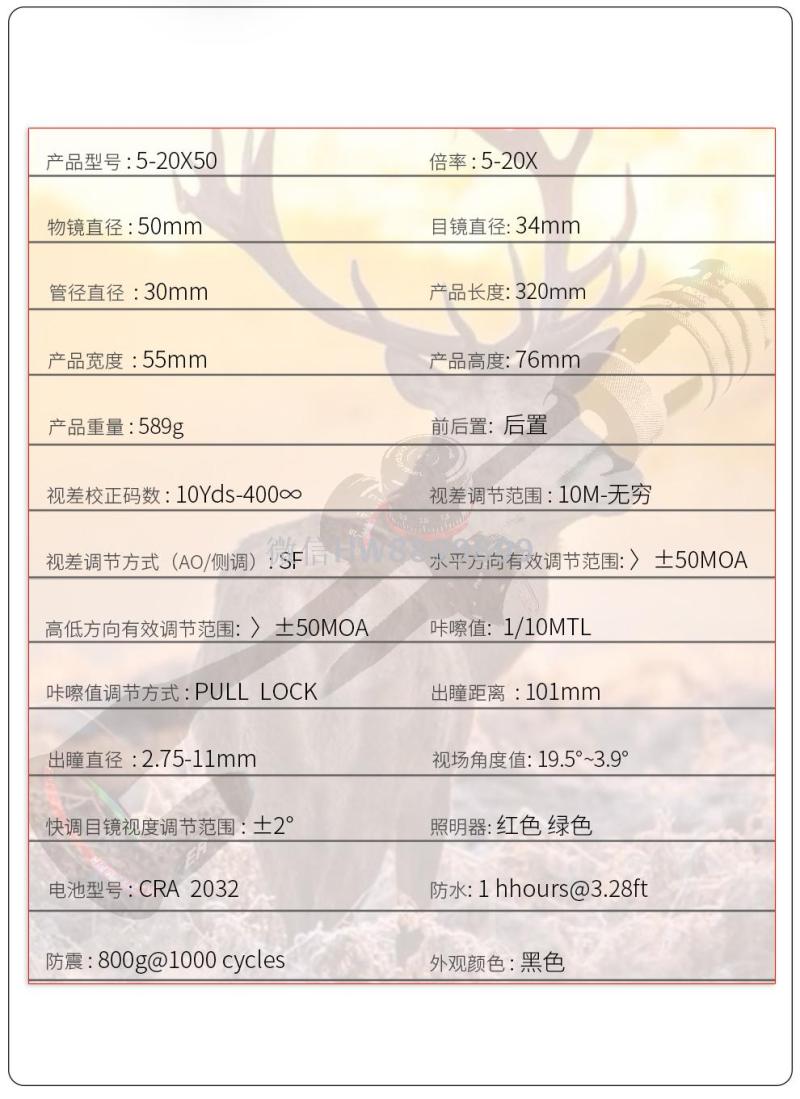 突鹰ER 5-20x50SFIR侧调焦抗震瞄准镜