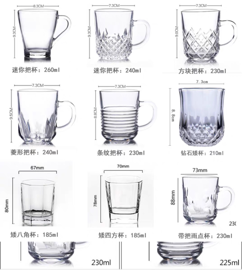 家用玻璃水杯茶杯套装 耐热玻璃杯茶杯果汁杯高颜值杯子