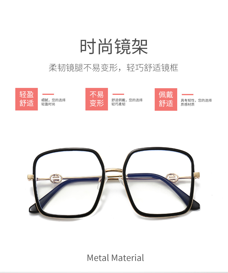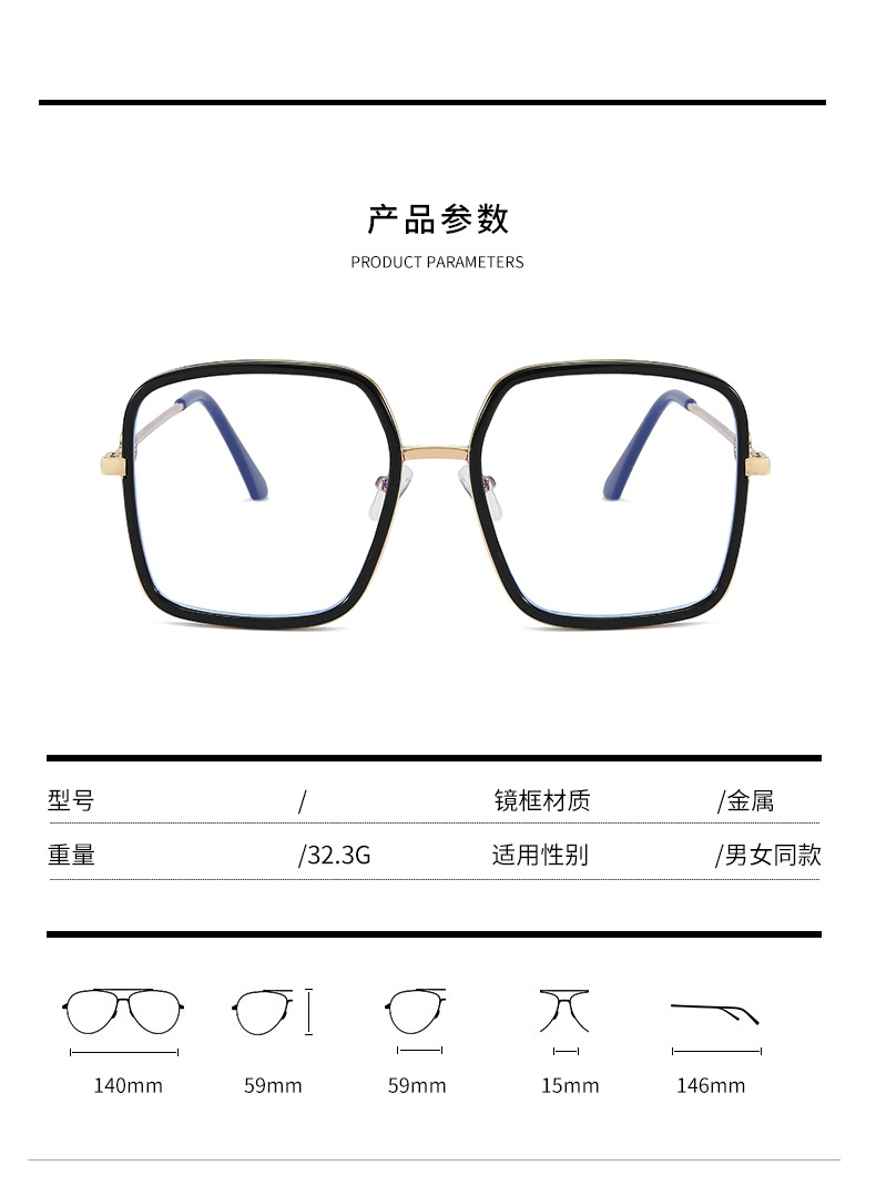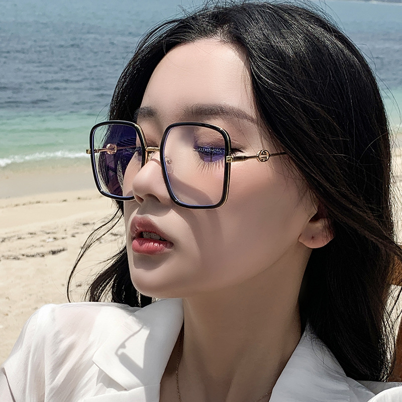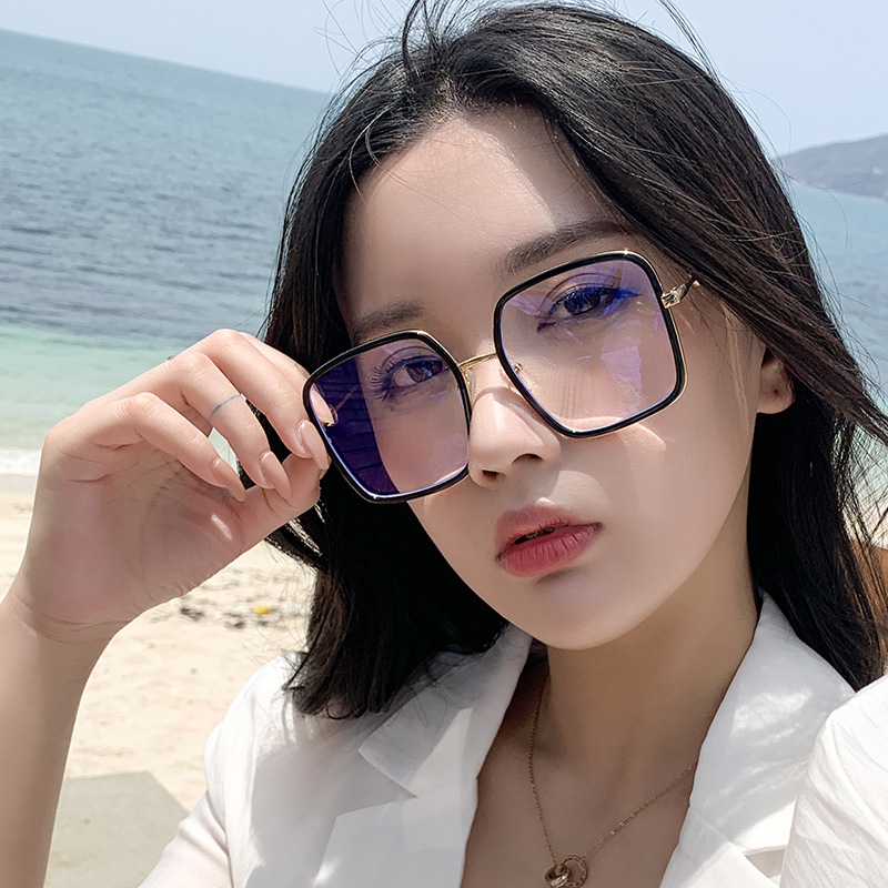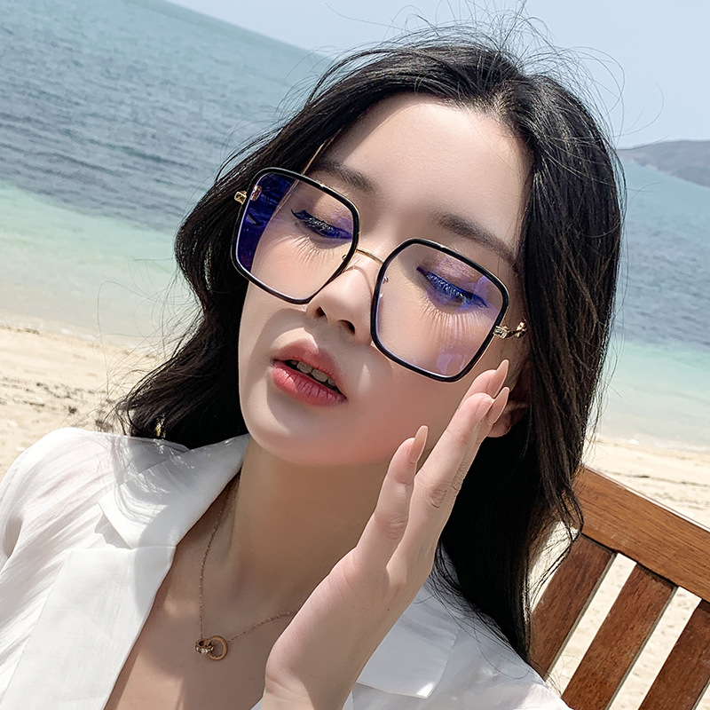 网红大框蓝光眼镜女韩版潮黑框方形素颜透明眼镜框大脸显瘦护眼