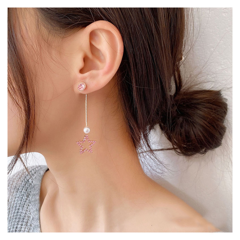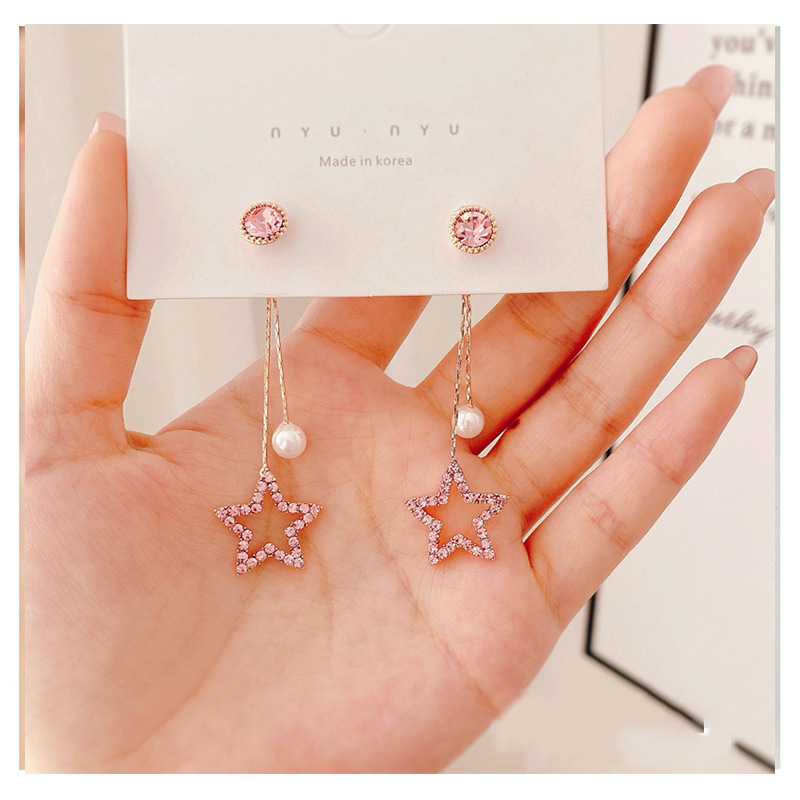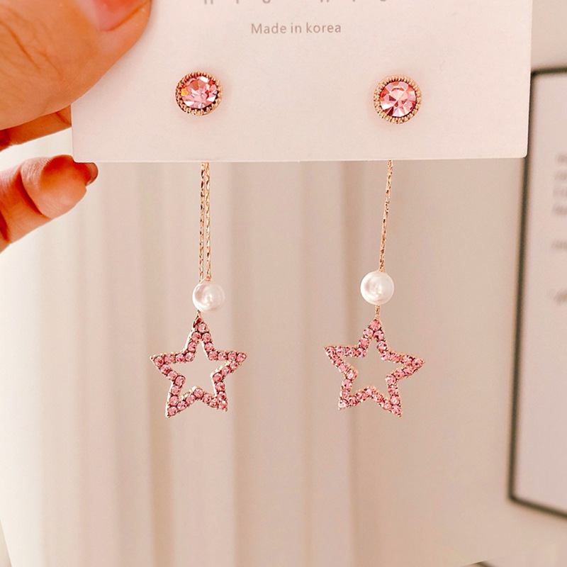 韩国珍珠爱心流行耳环女桃心形流苏耳坠长款s925银针五角星耳钉女