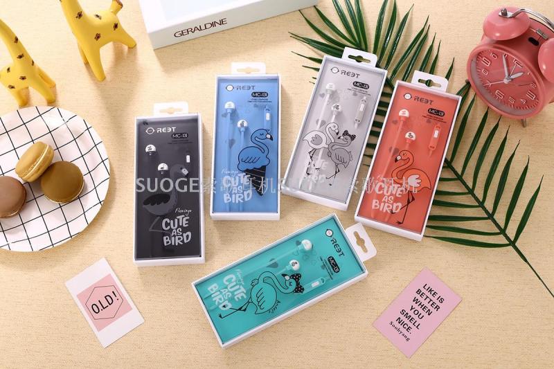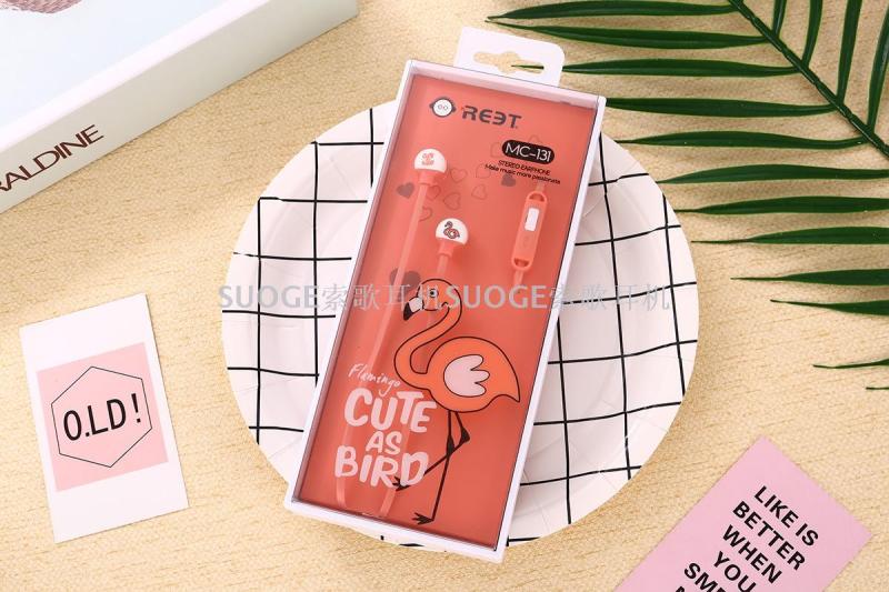 MC-131马卡龙色圣诞火烈鸟跨境爆款卡通3.5mm手机音乐耳机