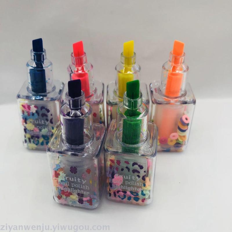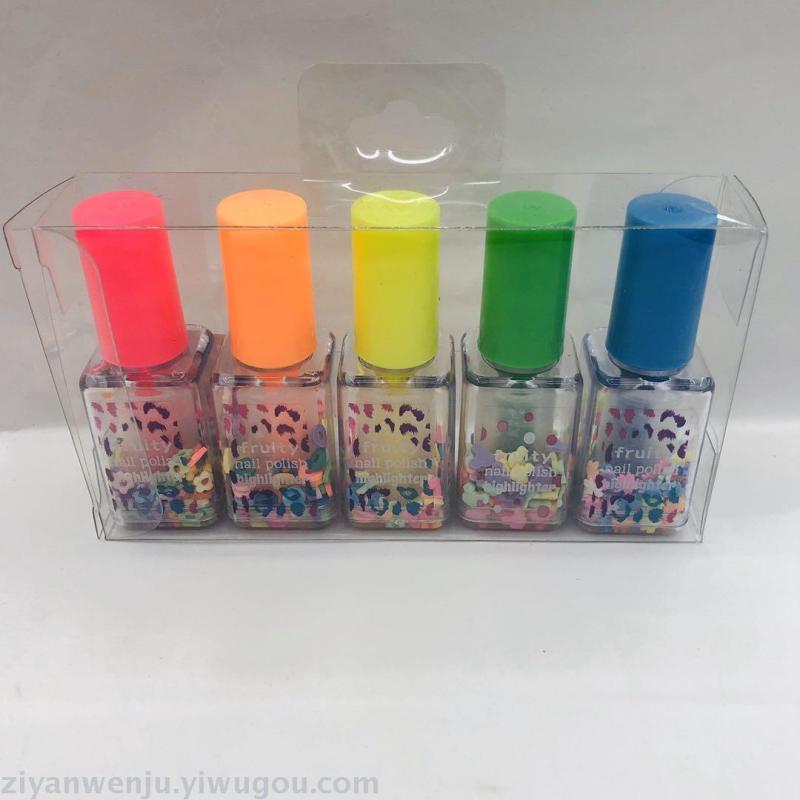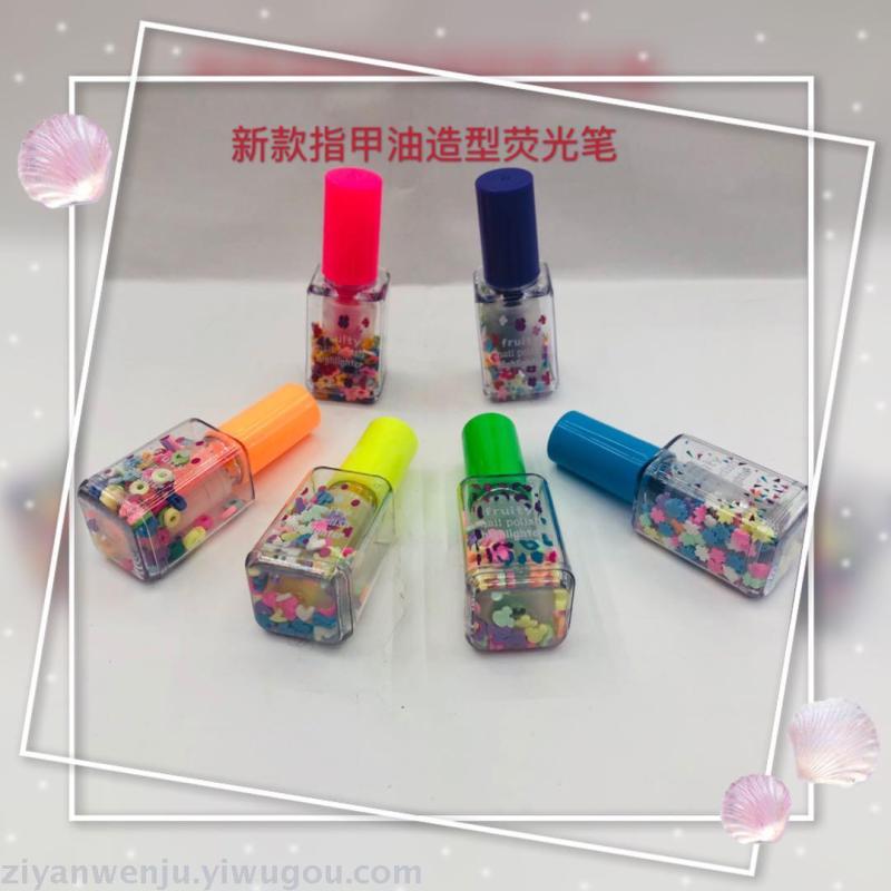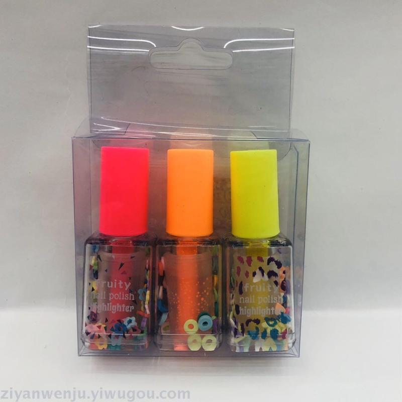 指甲油荧光笔3支5支PVC透明盒装 造型荧光笔 创意礼品