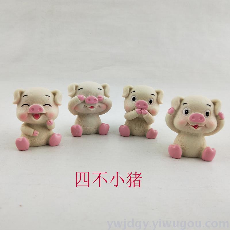 四不小猪汽车摆件树脂工艺品卡通公仔小猪仪表台装饰 地摊爆款