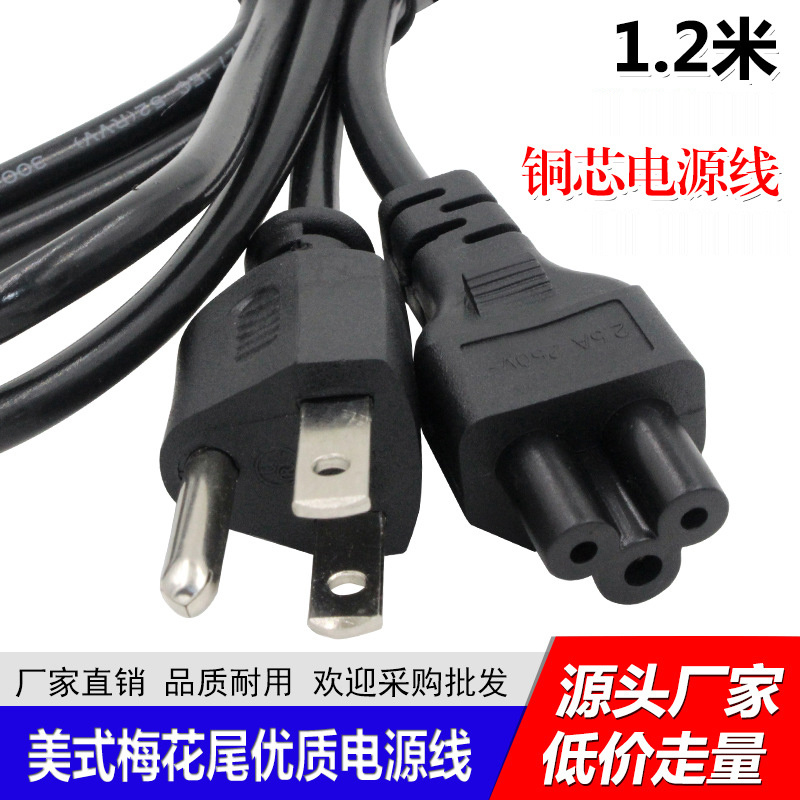美标笔记本梅花尾插头线适配器连接线美规加拿大电源线1.2米1.5米