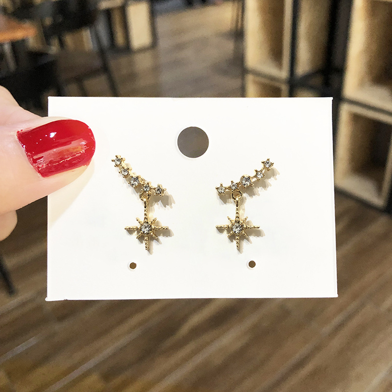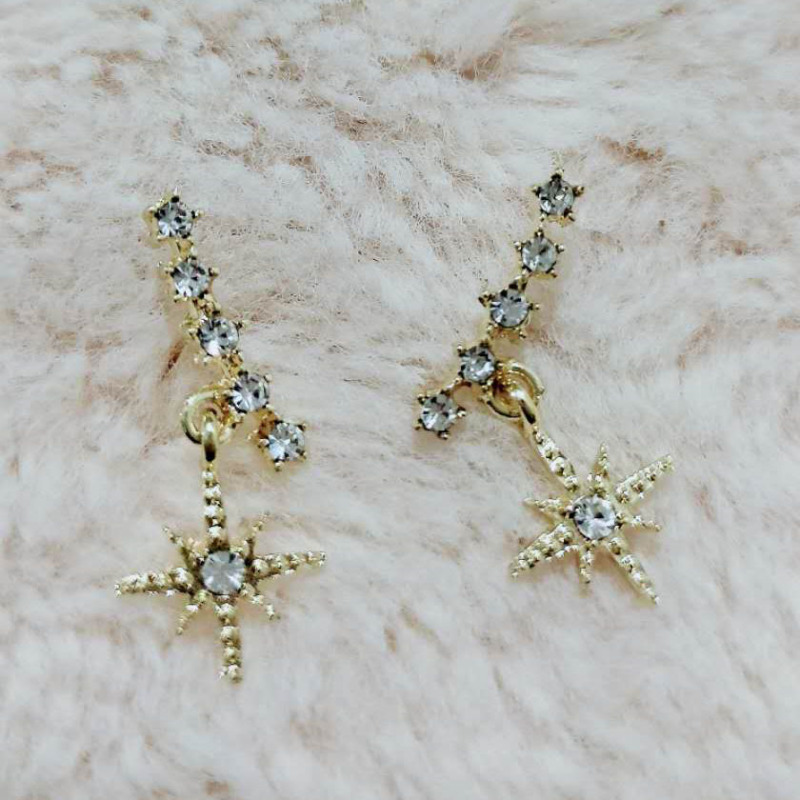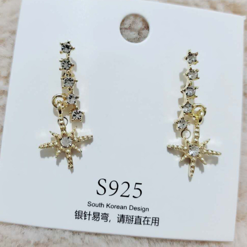 s925韩国新款东大门镶钻复古满天星超仙耳环精致小巧流星耳钉耳饰