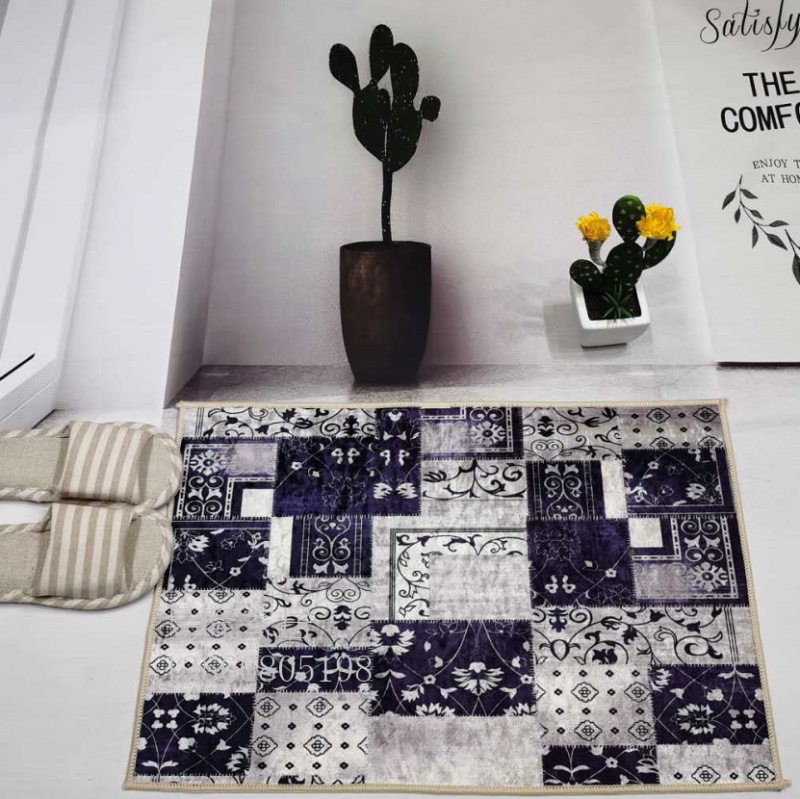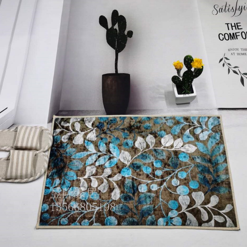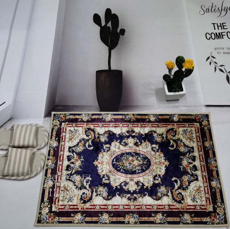 新品冰花绒金钻绒印花客厅地垫 民族复古素色书房沙发地垫