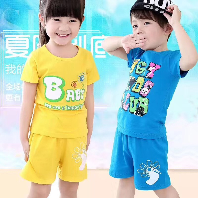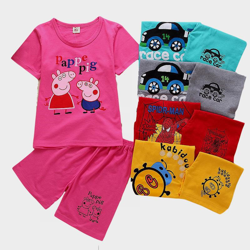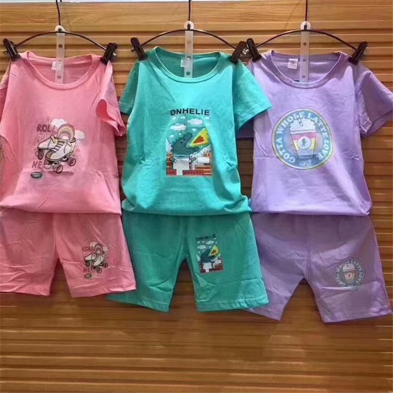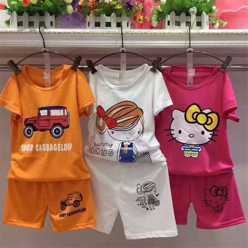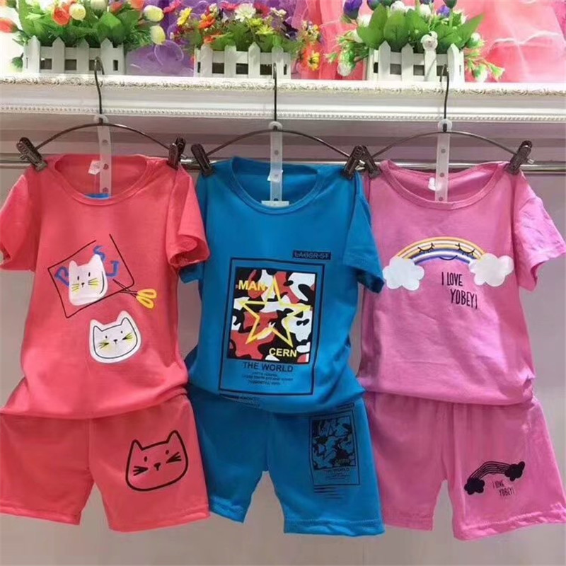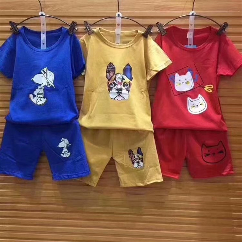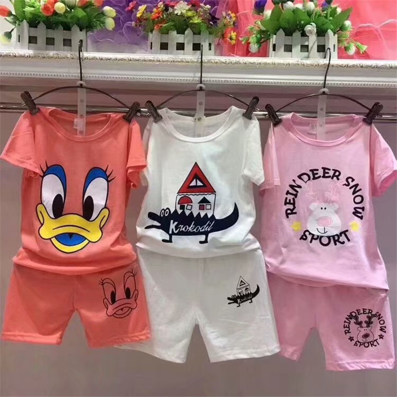 夏季新款儿童短袖短裤套装男女童卡通图案中小童纯棉T恤宝宝套装