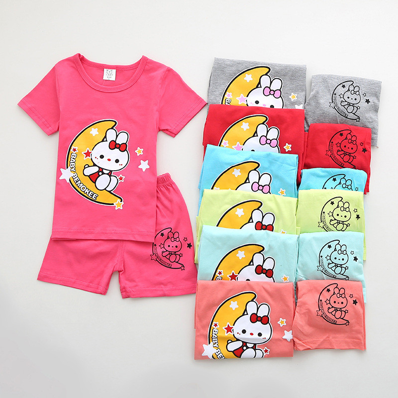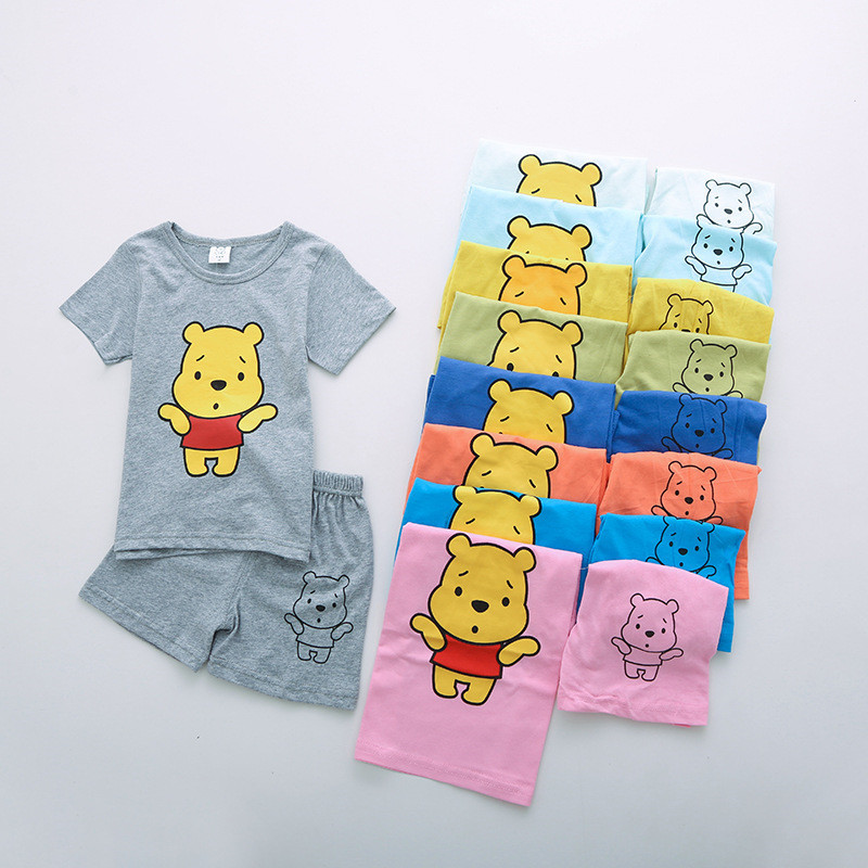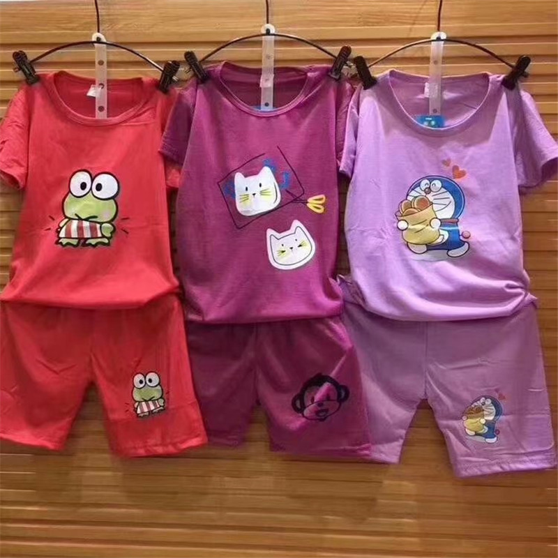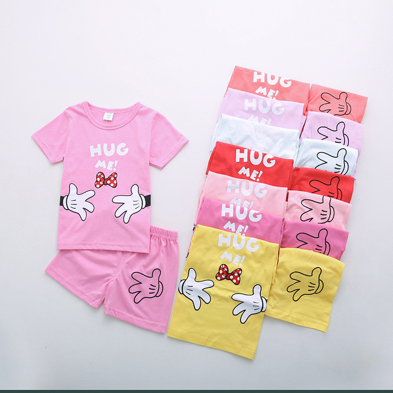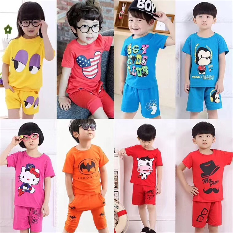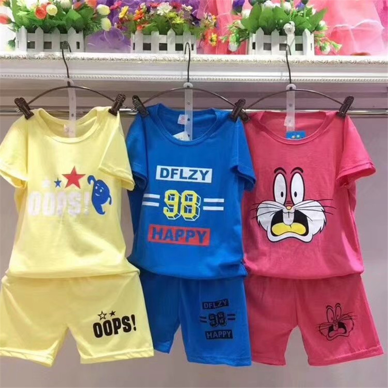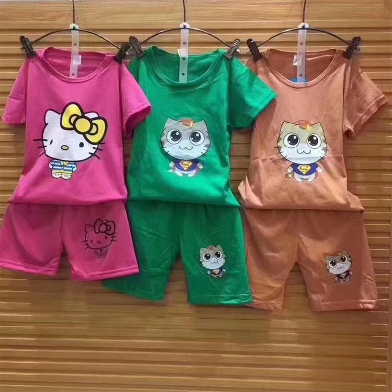 夏季新款儿童短袖短裤套装男女童卡通图案中小童纯棉T恤宝宝套装