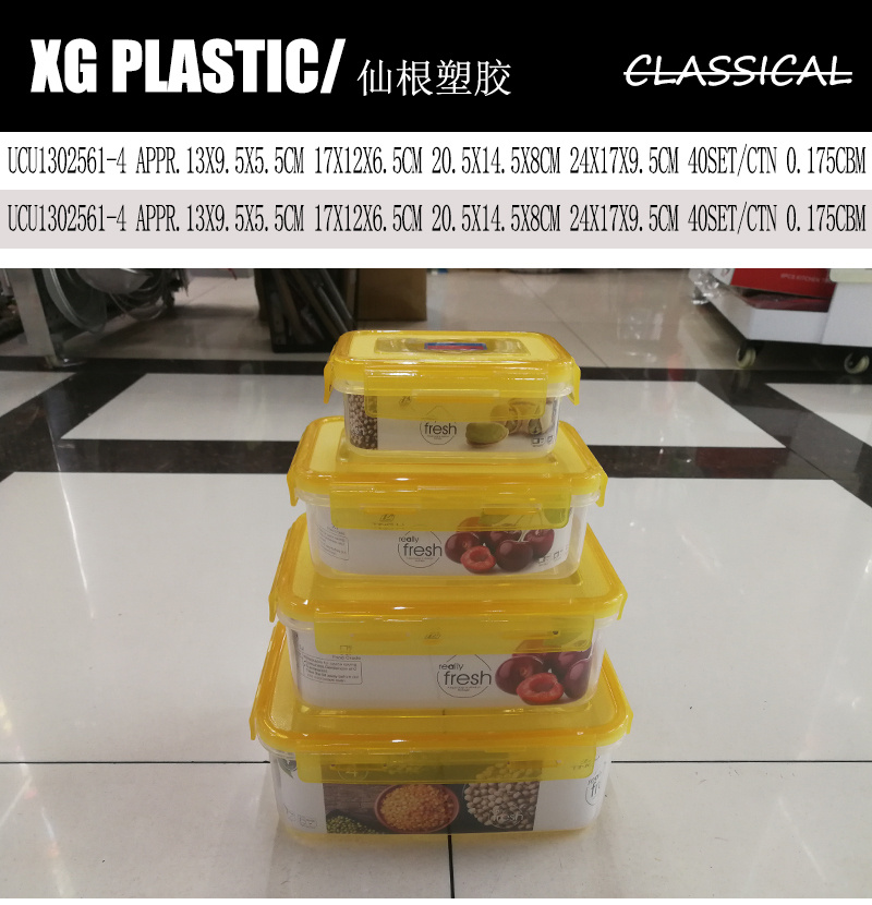 长方优质保鲜盒400/900/1700/2500毫升四件套塑料冰箱食品收纳盒