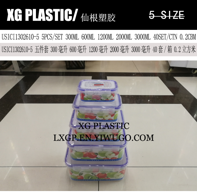 长方优质保鲜盒300/600/1200/2000/3000毫升五件套塑料食品收纳盒