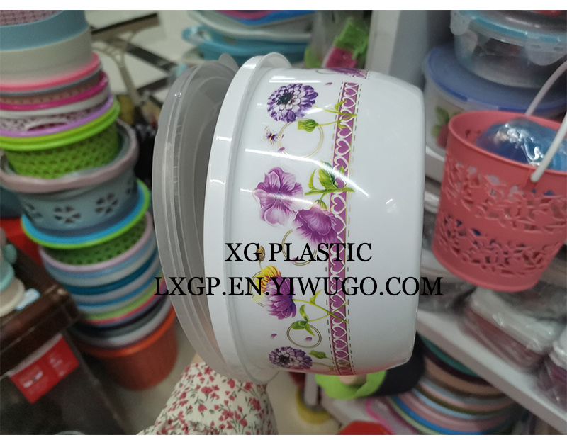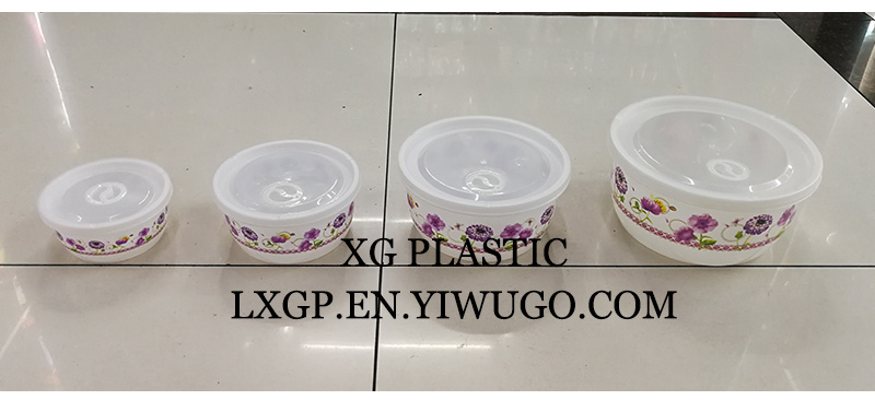 保鲜盒塑料印花时尚四件套保鲜盒圆形厨房冰箱食品储物盒收纳盒