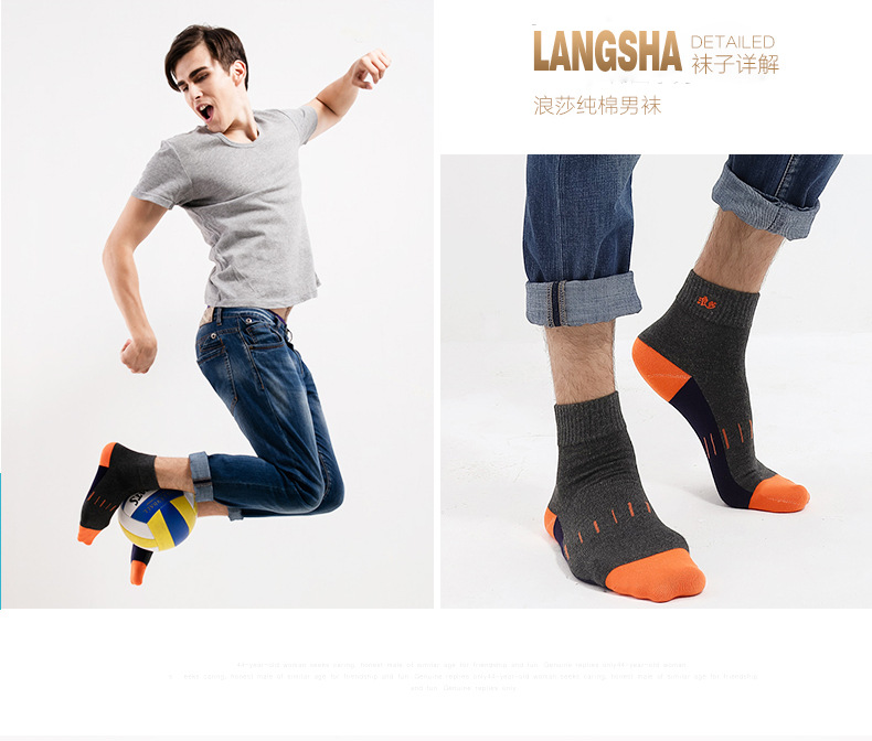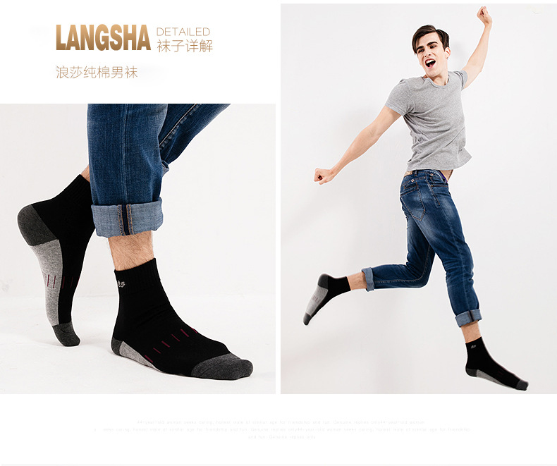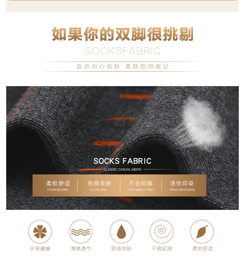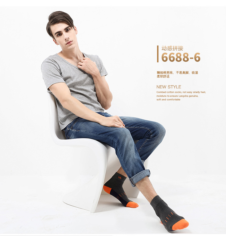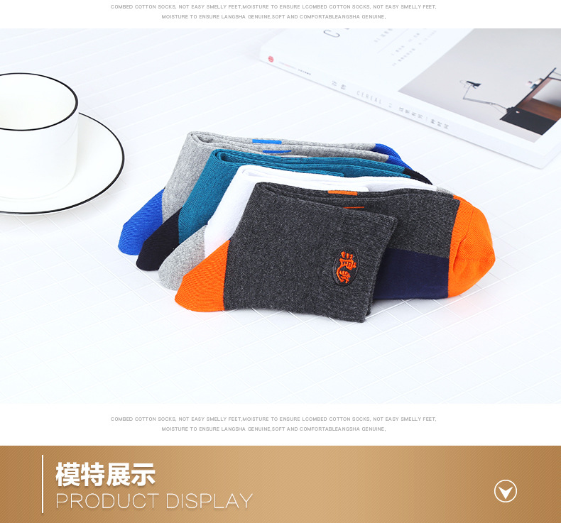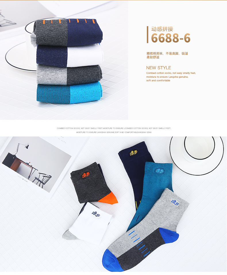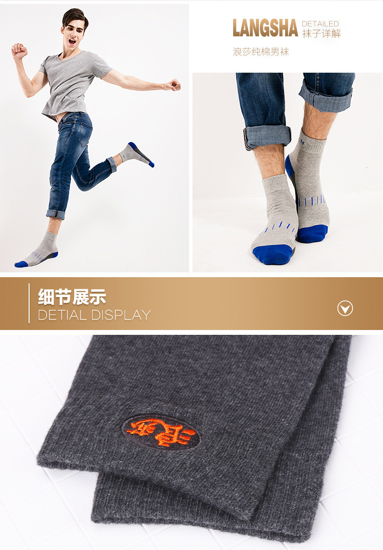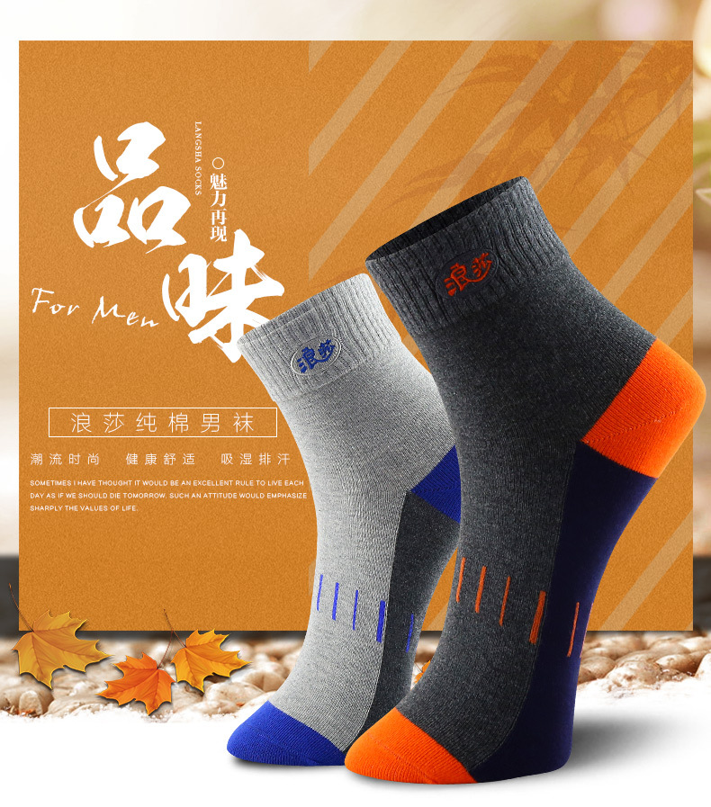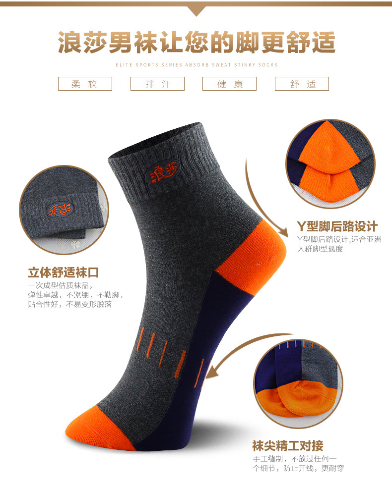 浪莎男士袜子男春秋季纯棉刺绣中筒防臭吸汗高档全棉袜运动潮袜