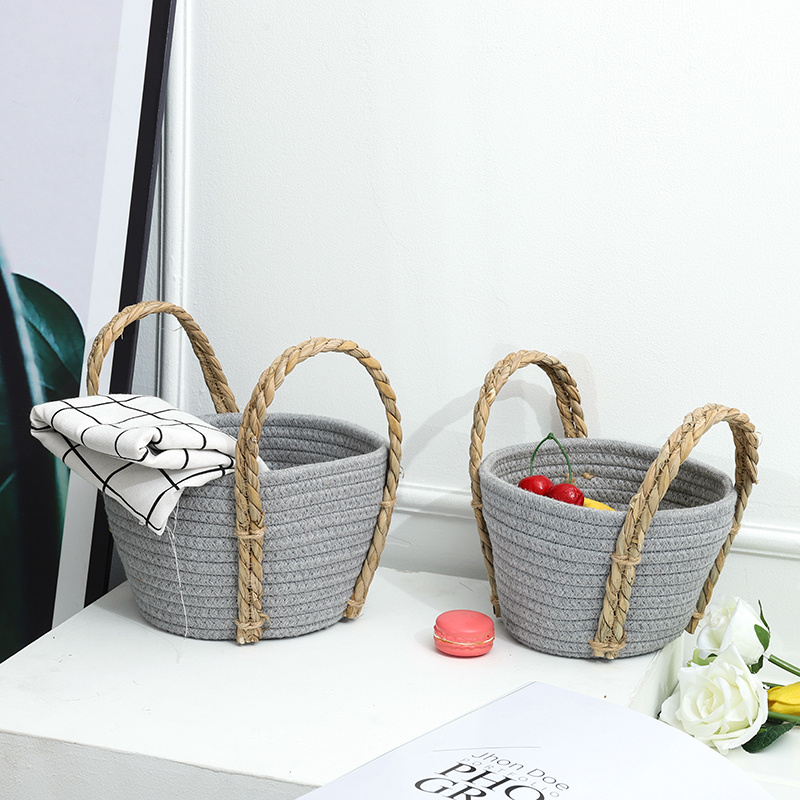 棉绳编织手提收纳筐 脏衣篓 玩具零食收纳置物篮