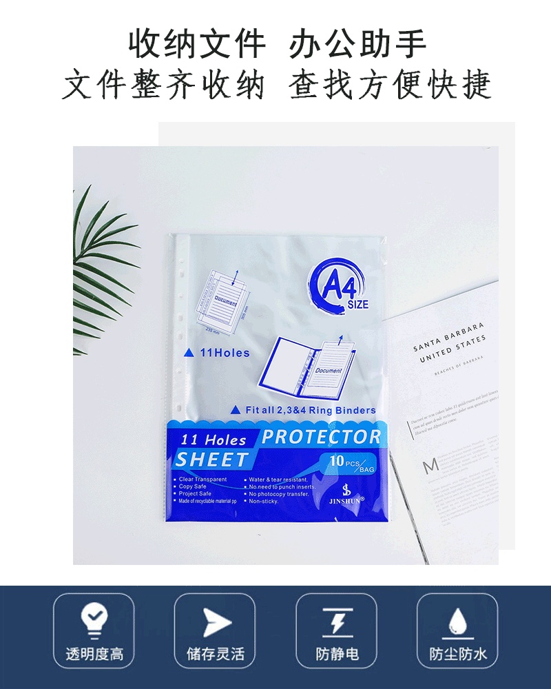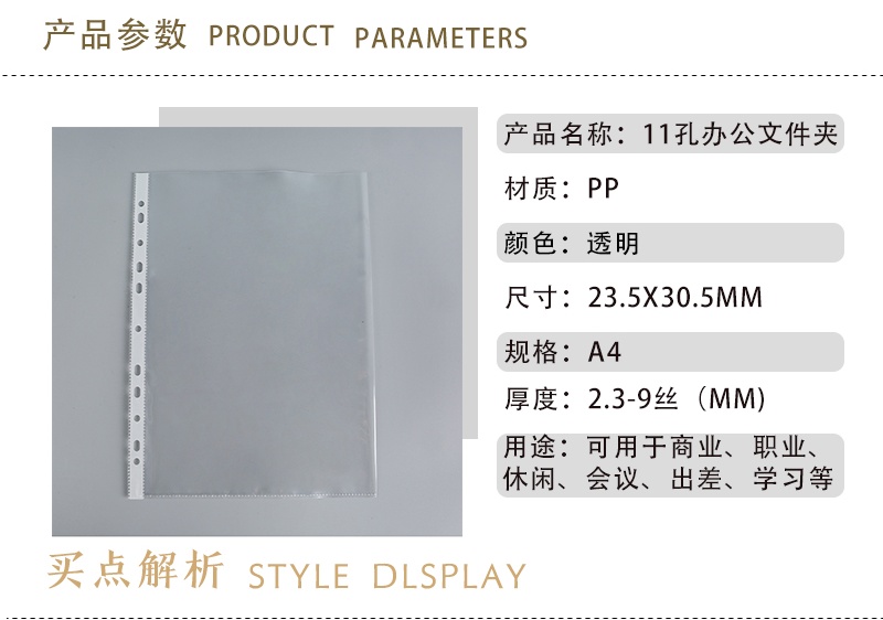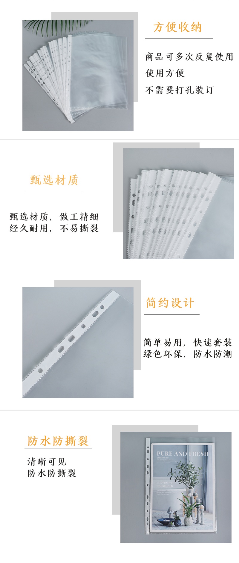 11孔活页袋A4透明袋多孔内页袋厚度8MIC 10PCS(可定做3~10丝)