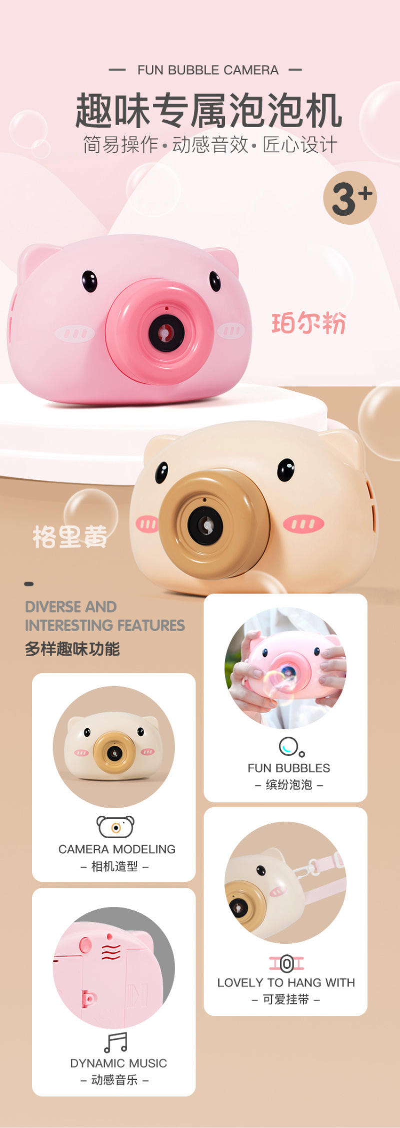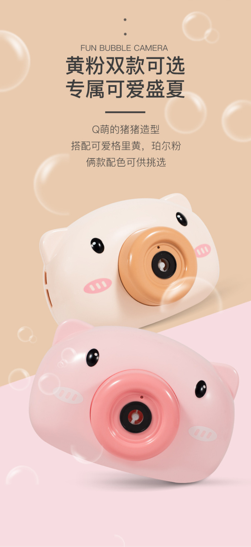 电动小猪泡泡机玩具抖音同款网红少女心儿童卡通全自动吹泡泡相机