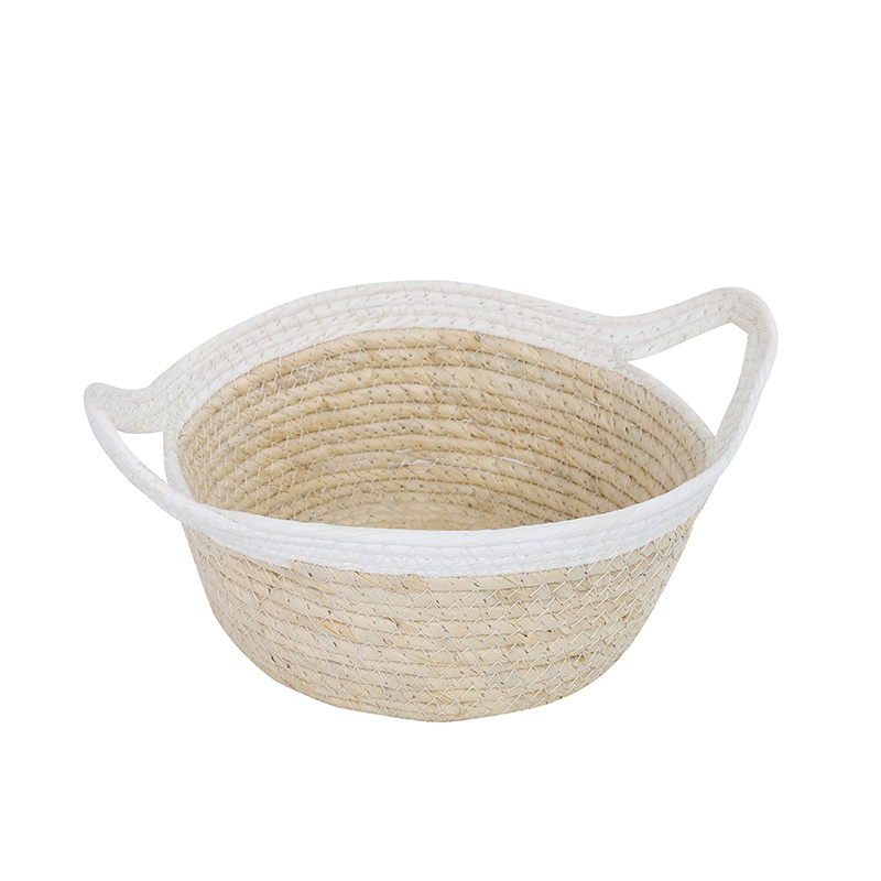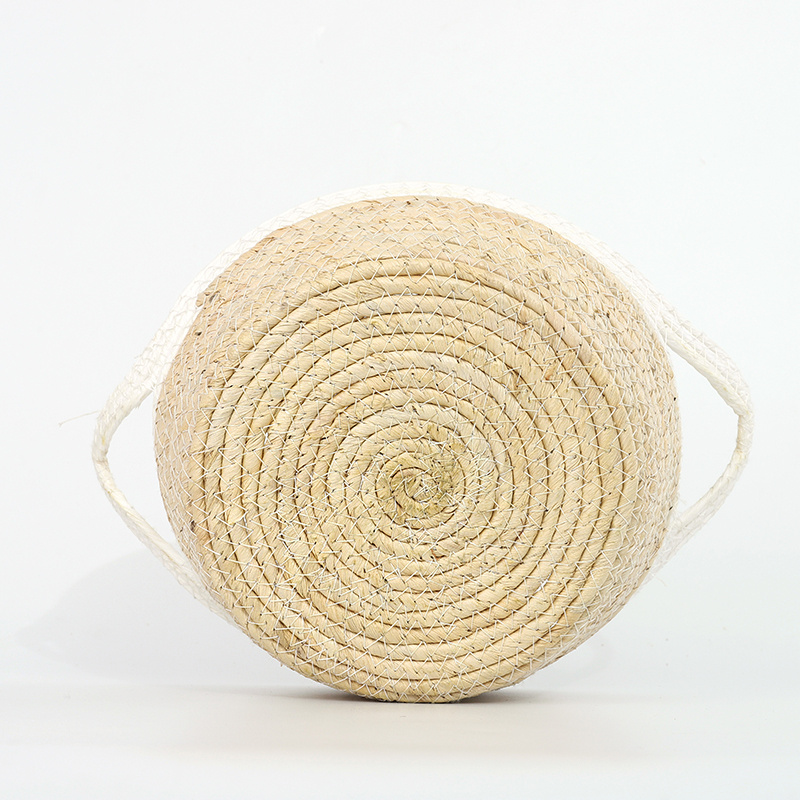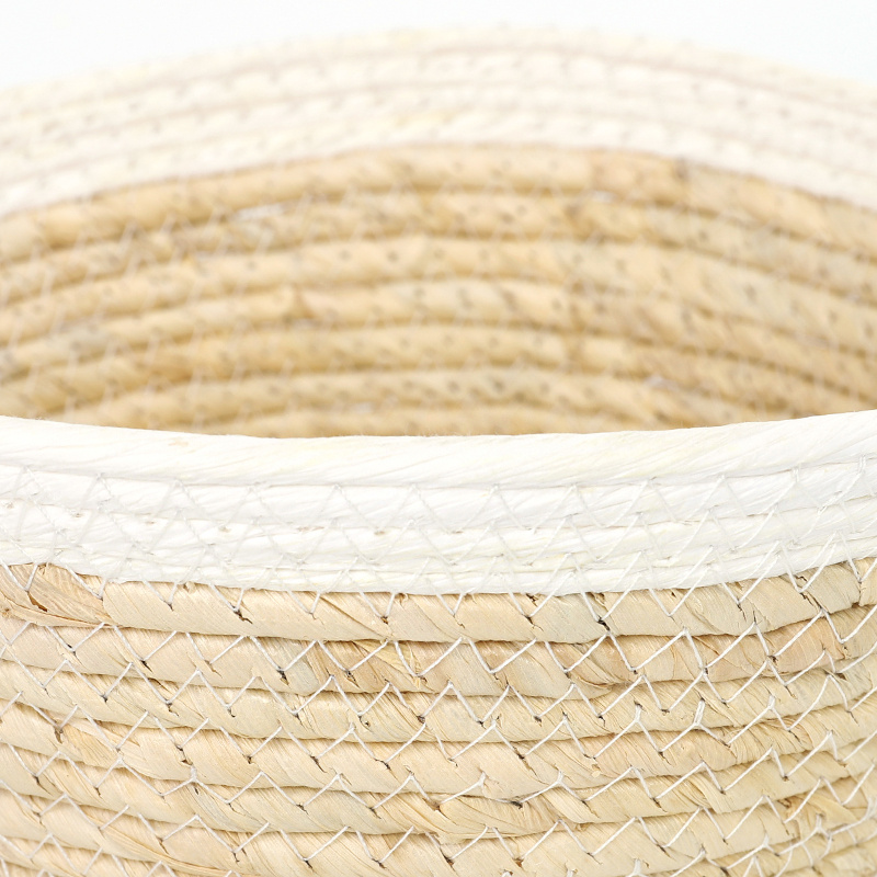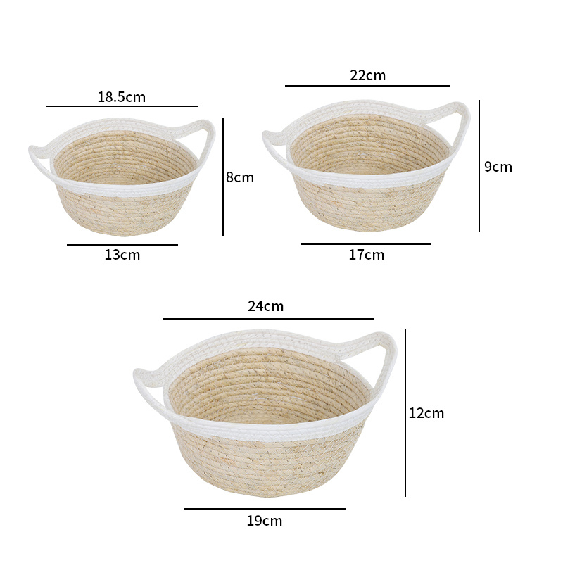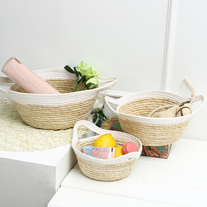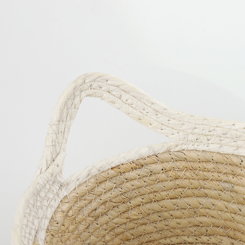 北欧风草编筐 衣物玩具整理玉米皮编收纳筐 手工玉米皮编织