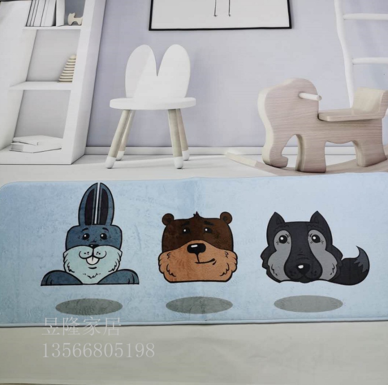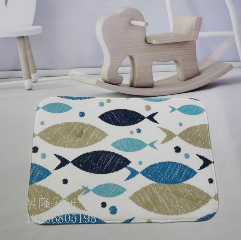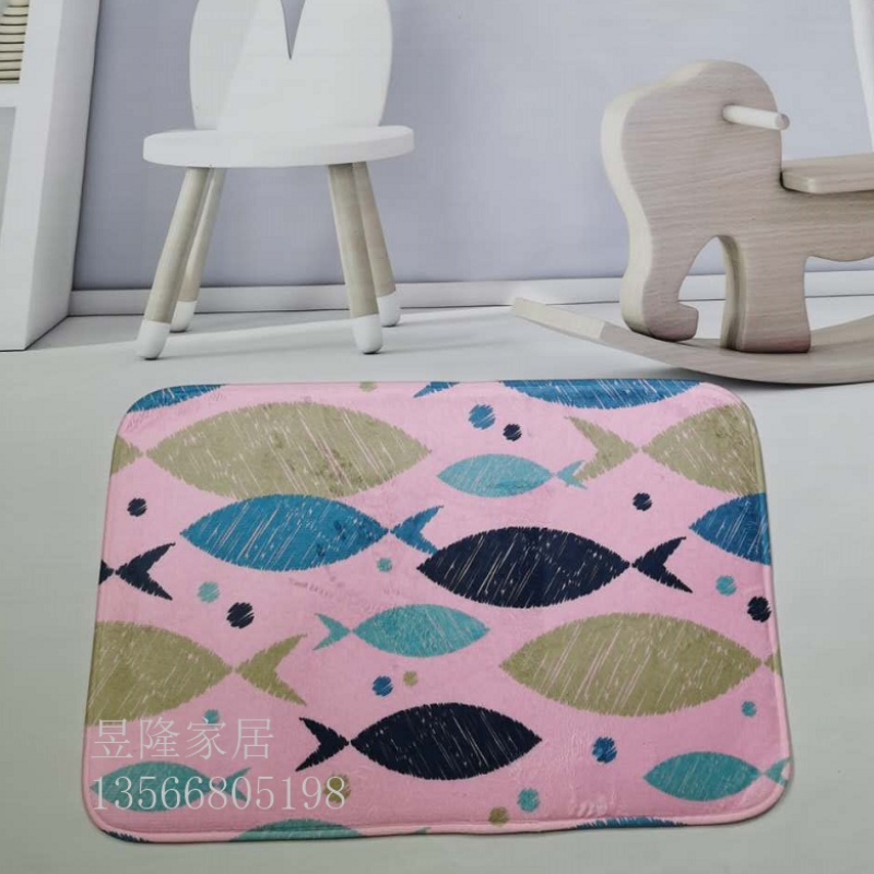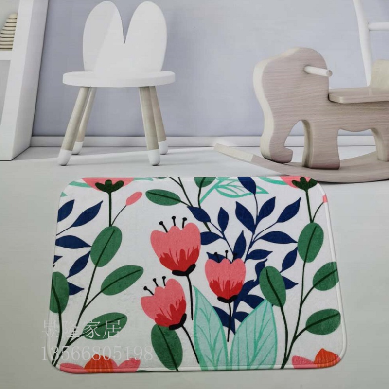 厂家直销卡通清新海绵地垫法兰绒印花5厚 吸水防滑浴室门脚垫