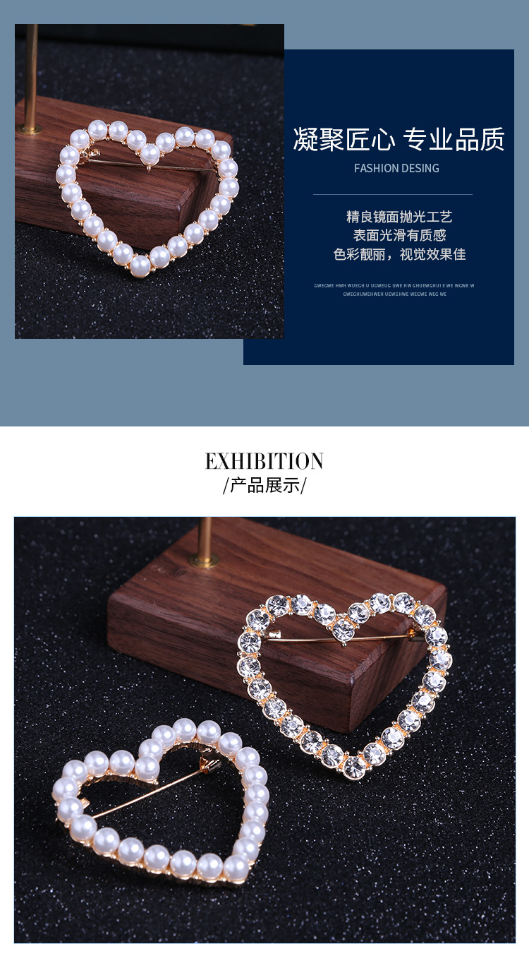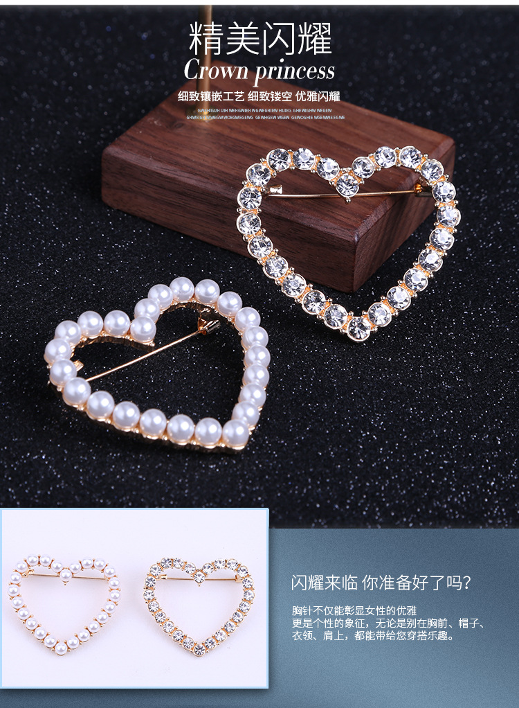 镂空爱心胸针合金胸花女 别针衣饰配饰韩版甜美百搭镶珍珠水钻