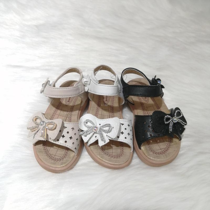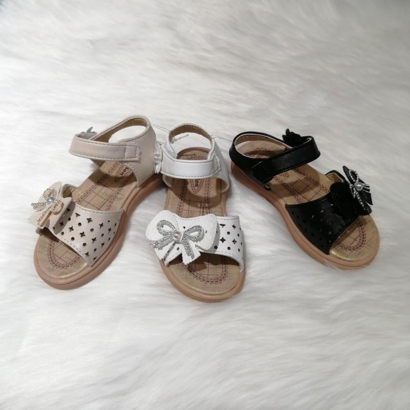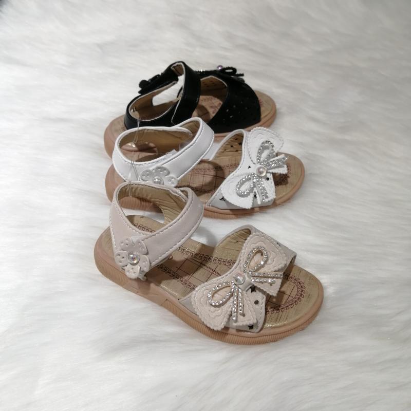 儿童女孩蝴蝶结小珍珠款软底防滑透气魔术贴凉鞋女宝宝凉鞋