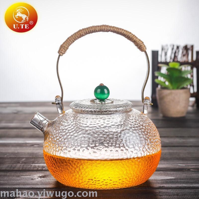 玻璃手工锤纹过滤茶壶