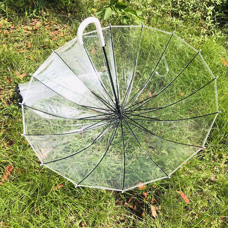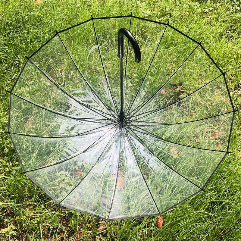 韩版ins热卖全透明伞长柄雨伞16骨加大小清新定制logo厂家批发
