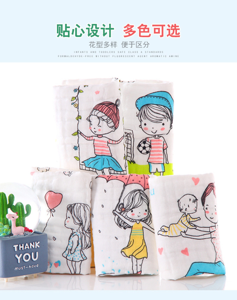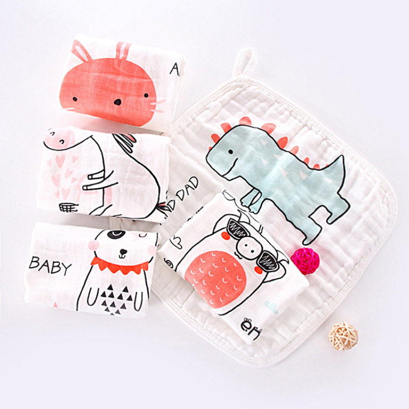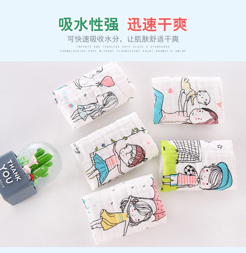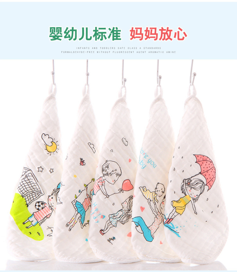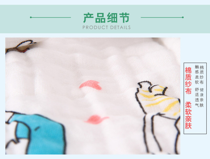独版六层高密纯棉纱布印花方巾泡泡纱小毛巾婴幼儿口水巾