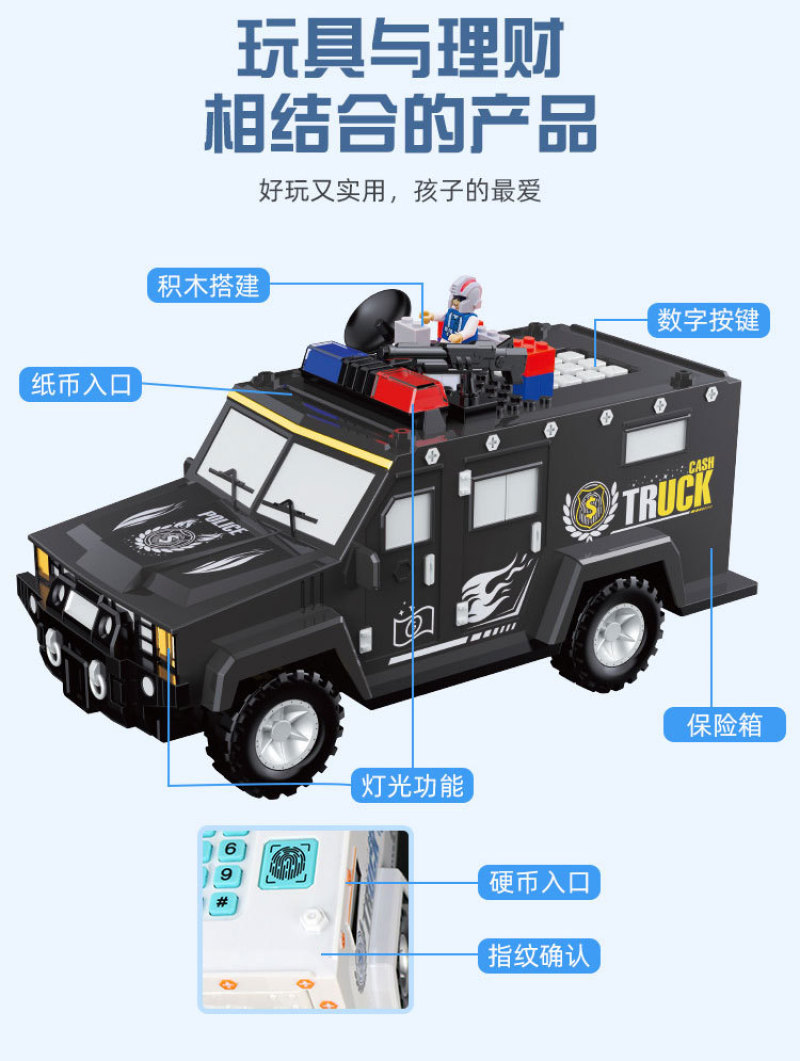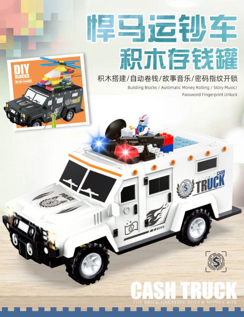 悍马积木运钞车存钱罐儿童汽车储蓄罐网红密码箱男孩玩具警车防摔