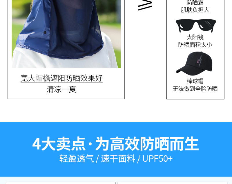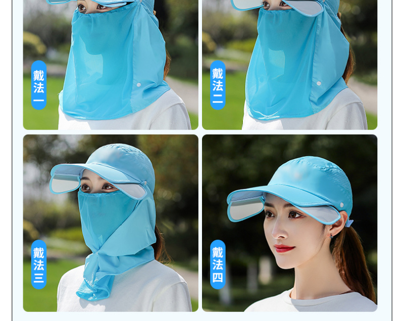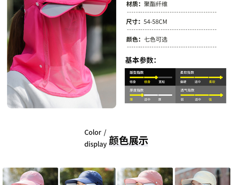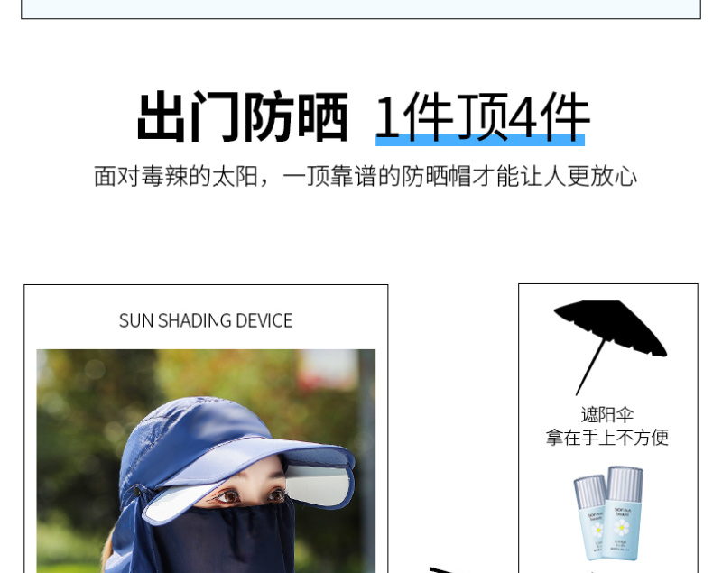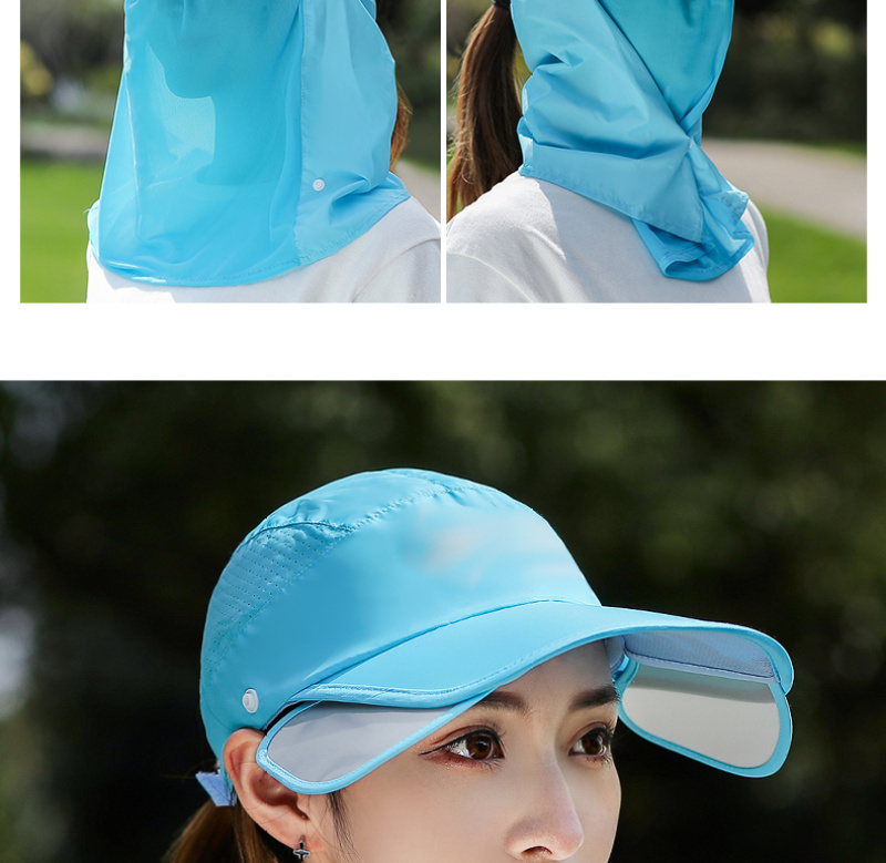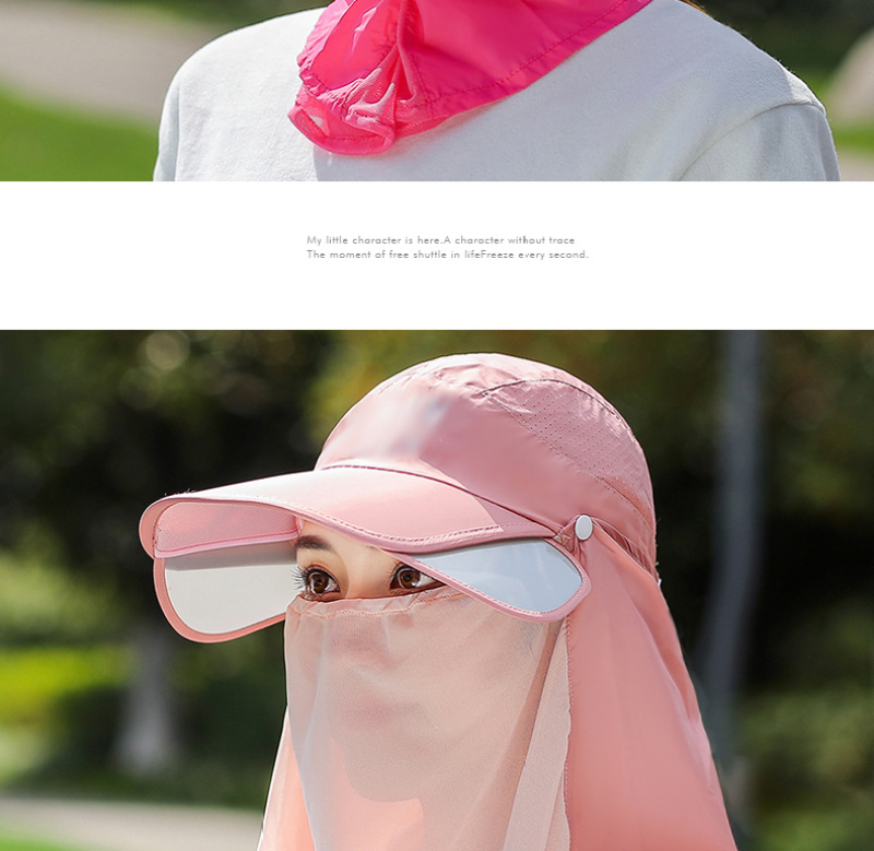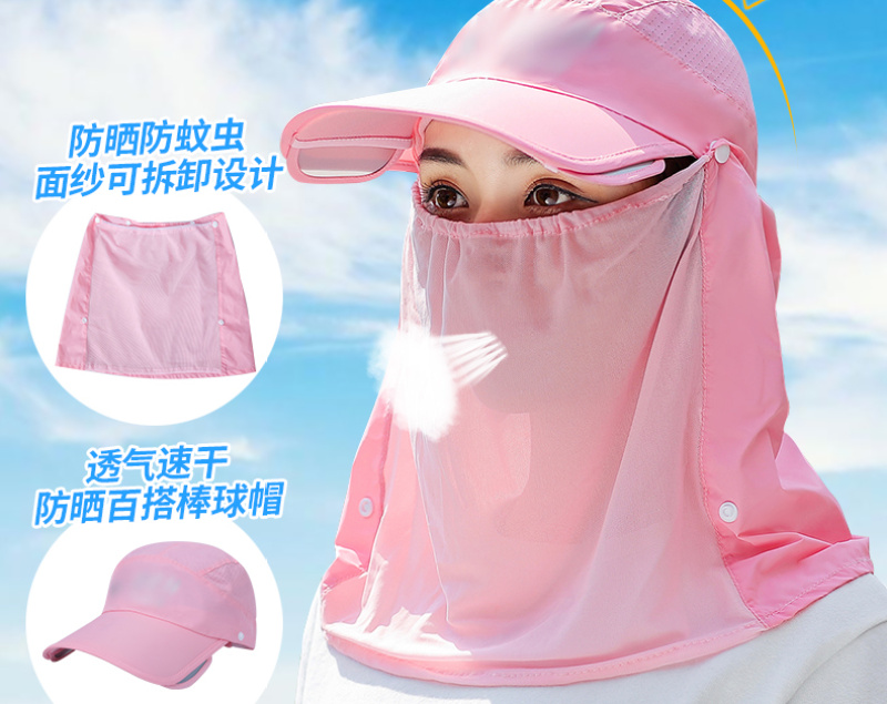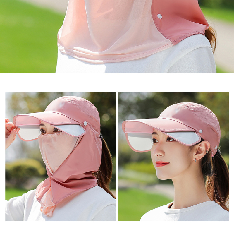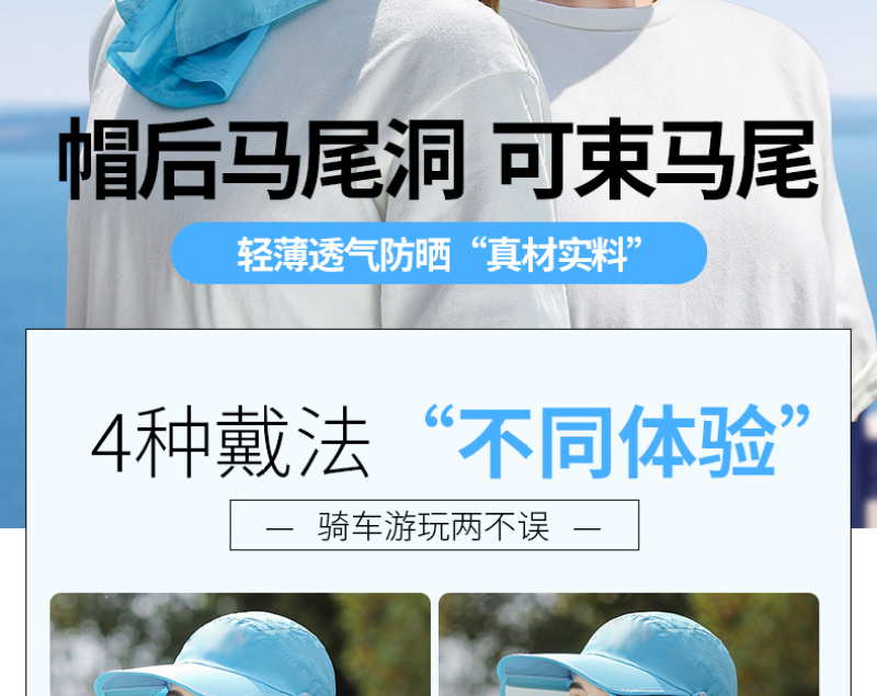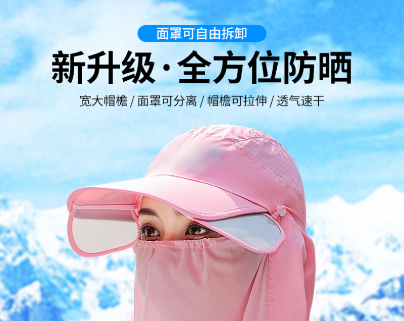 夏天遮脸运动鸭舌太阳帽男女护脖防紫外线遮阳帽骑车登山防晒帽子