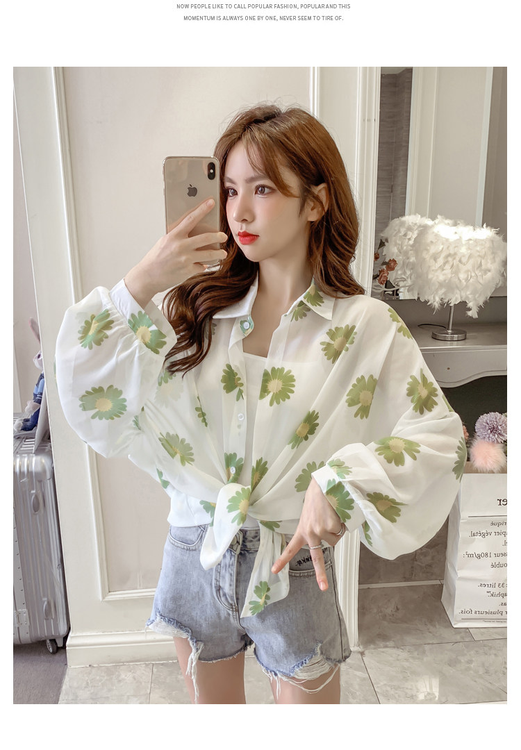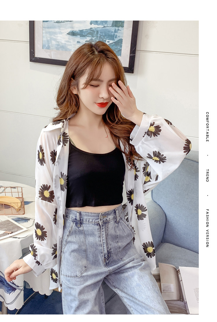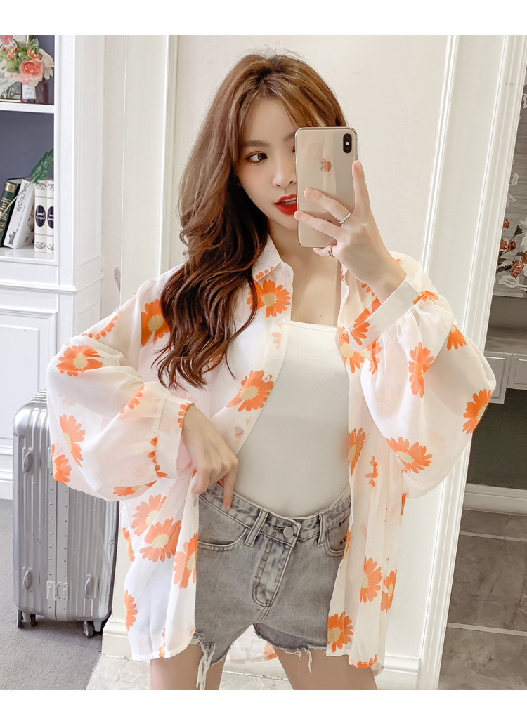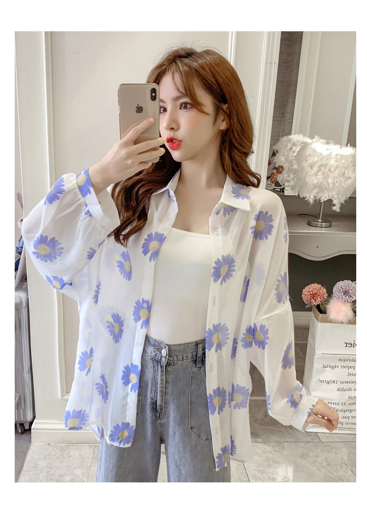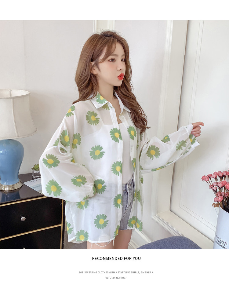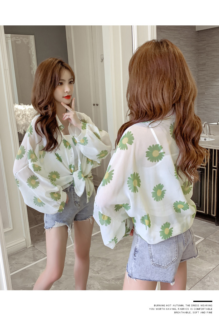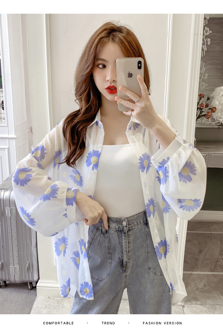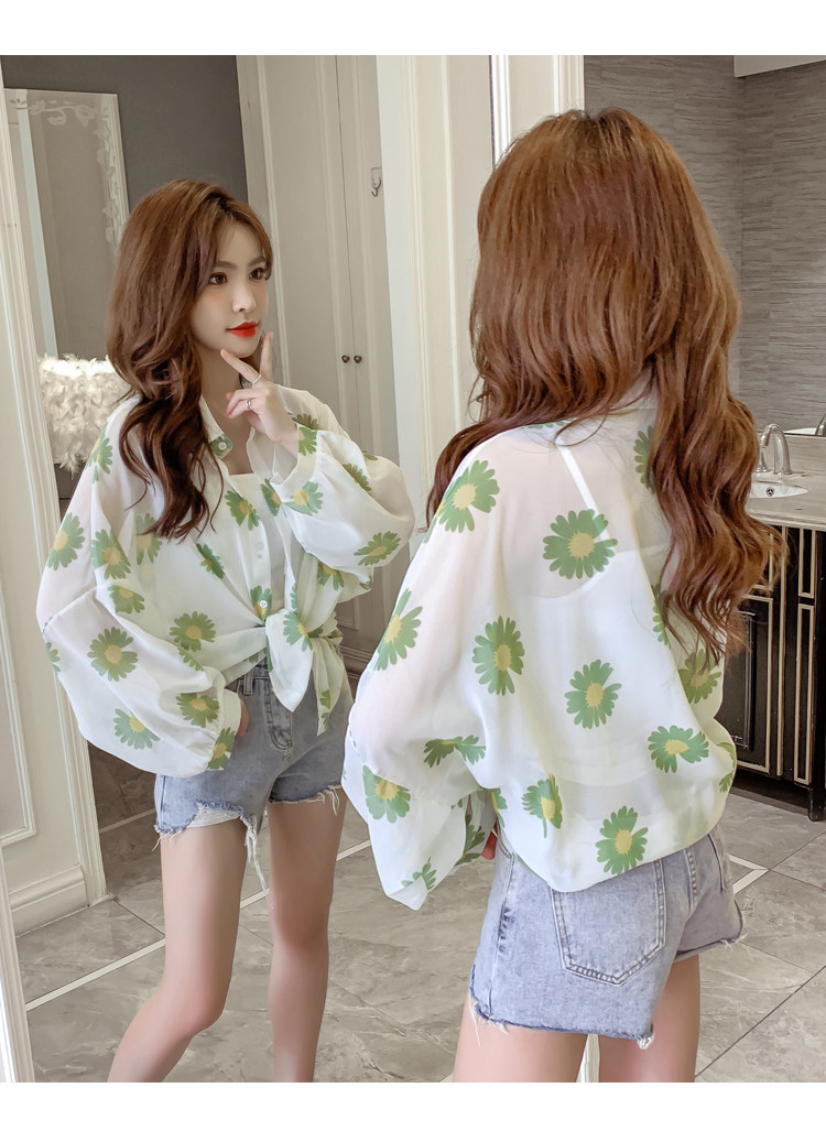 网红小雏菊防晒衣女夏衬衫百搭中长款雪纺外套韩版宽松大码空调衫