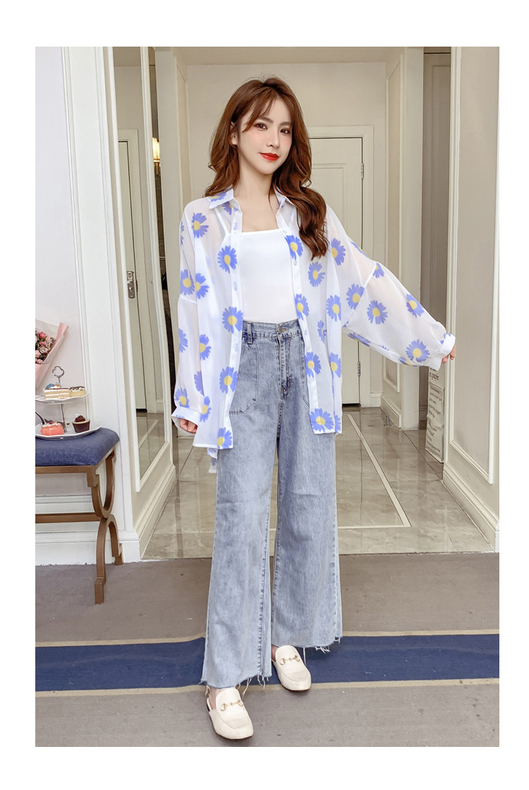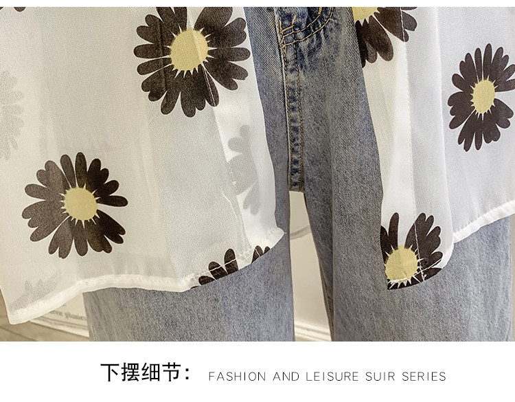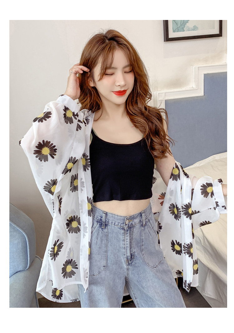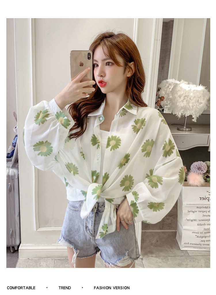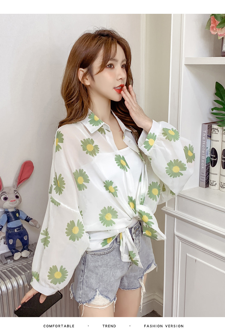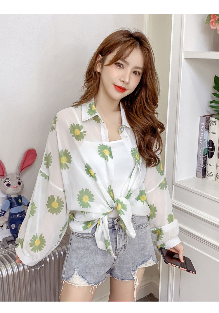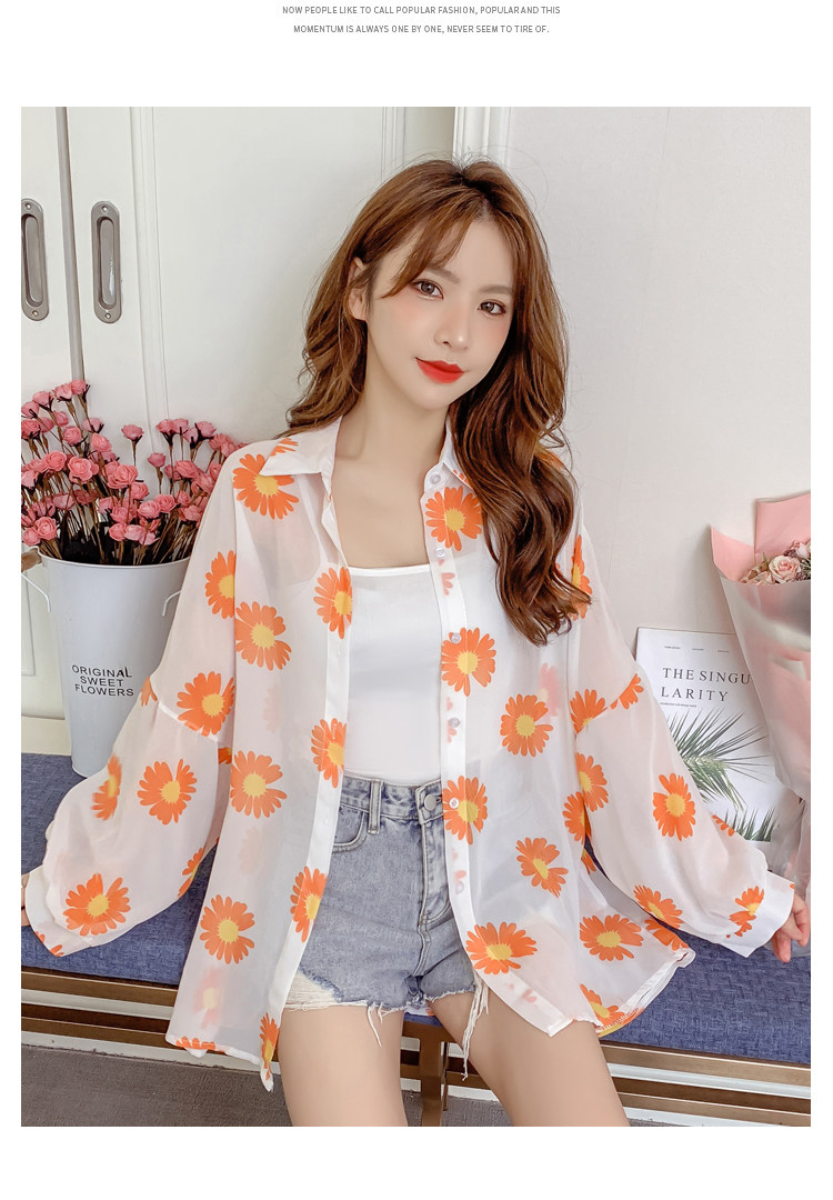 网红小雏菊防晒衣女夏衬衫百搭中长款雪纺外套韩版宽松大码空调衫